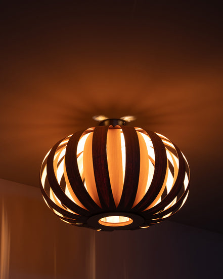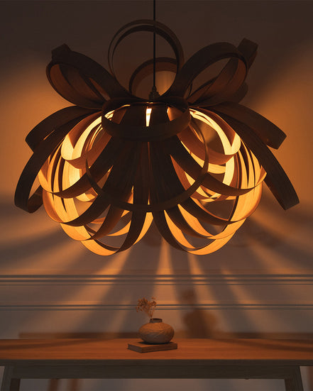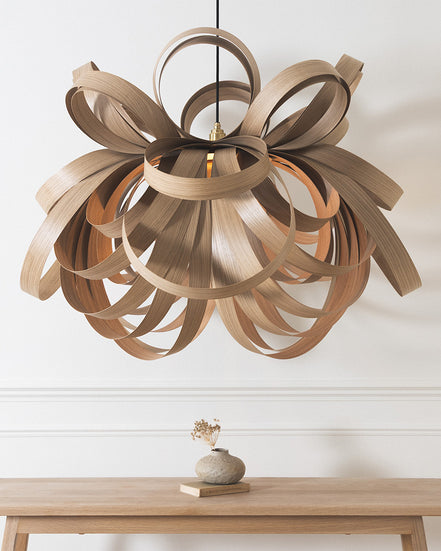 Explore conversation-sparking designer pendant lights and lampshades by Tom Raffield, including our instantly recognisable Skipper design. Available in ash, oak and walnut wood, the luxury pendant lights are handcrafted in England. Choose from sculptural ceiling lights, drum lampshades or Scandi-inspired designs in our range of elegant pendant lights.
