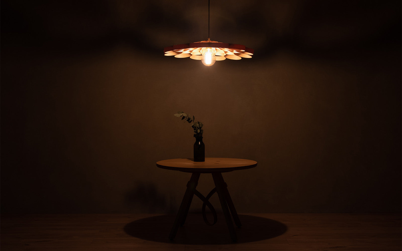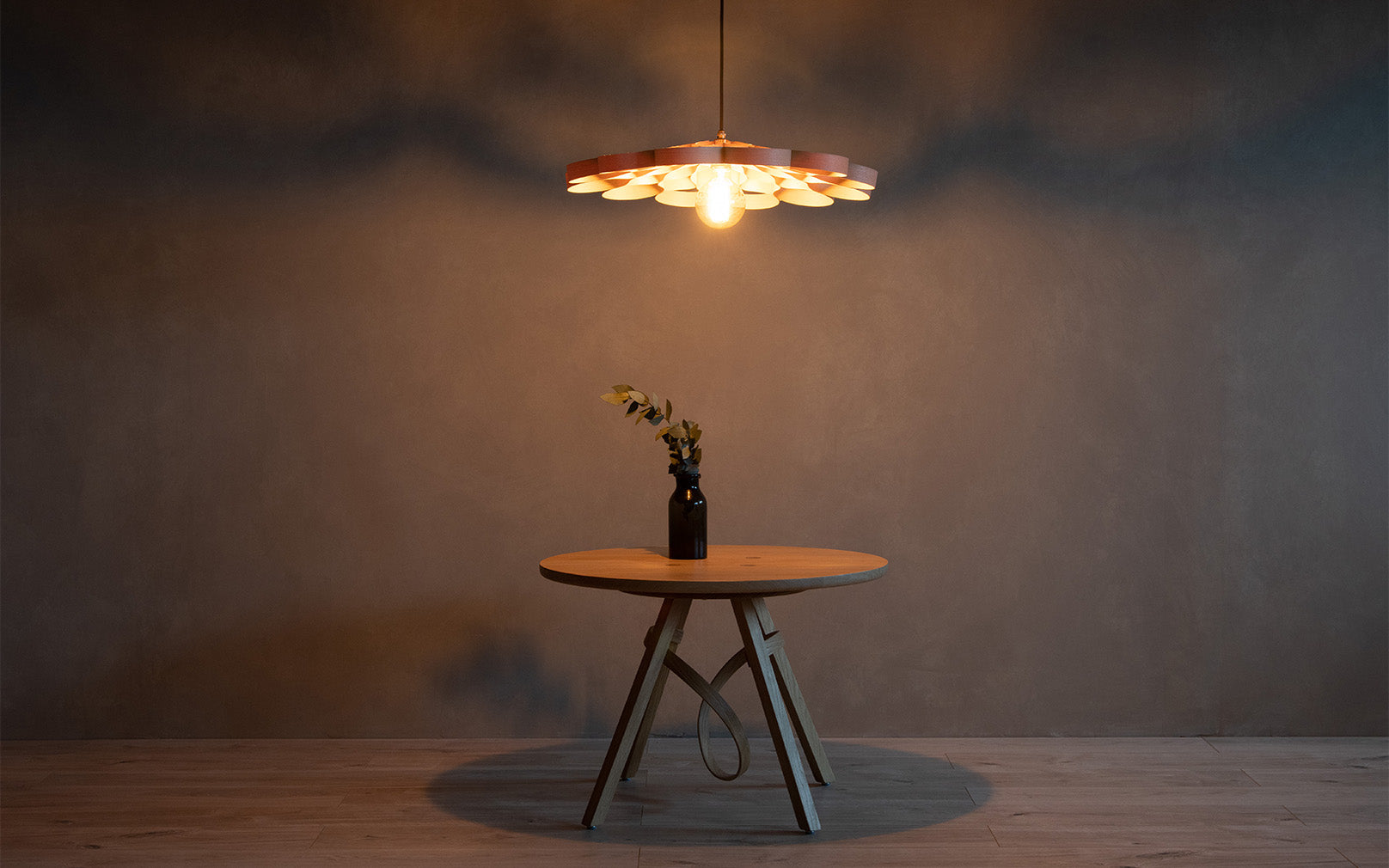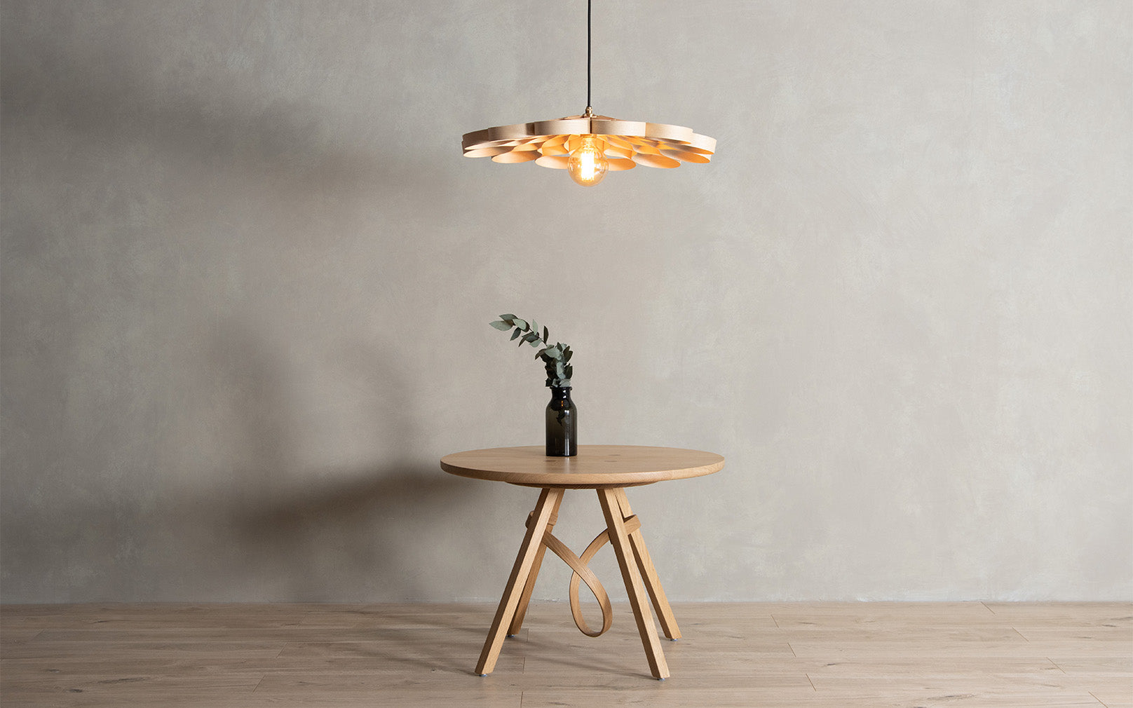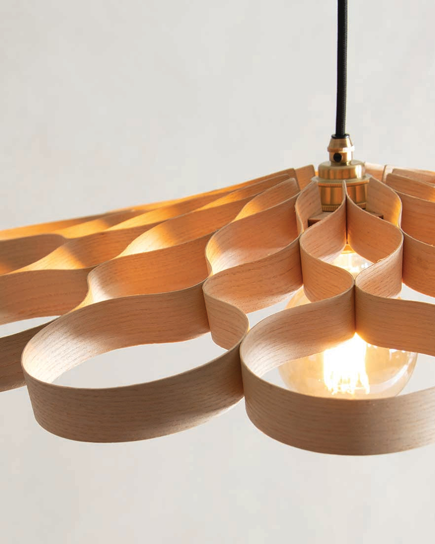 Elemental, geometric, sequential. A surge of optical energy; a silhouette of sustainable craftsmanship. Switched on or off, boundless shadows unfurl, pirouette and tumble in kaleidoscopic tessellation creating an extraordinary spectacle in your space. When illuminated, an abundance of golden glow diffuses from the Small Arame Pendant’s steam bent core - casting an aura of light that's truly transfixing.