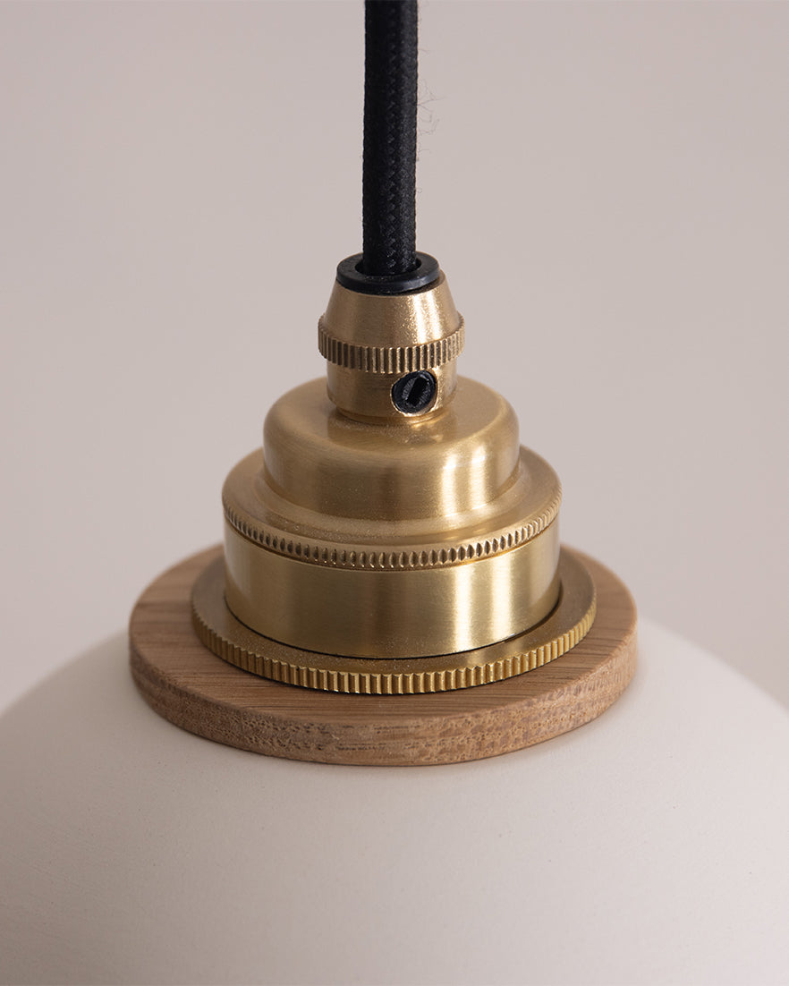 Indulge in the serene presence of the Bue Pendant, as the ceramic lampshade transforms your surroundings into a haven of serenity with its timeless design. The dome-shaped, hand-glazed earthenware lightshade cocoons the bulb to cast a gentle downlighting that invites relaxation. Uniting the natural colour palette with a halo of sustainably sourced oak, the Bue Pendant showcases understated beauty. Ideal for serene bedrooms, Scandi kitchens, and peaceful self-care havens, the Bue's modern Japandi-style design effortlessly complements various spaces.