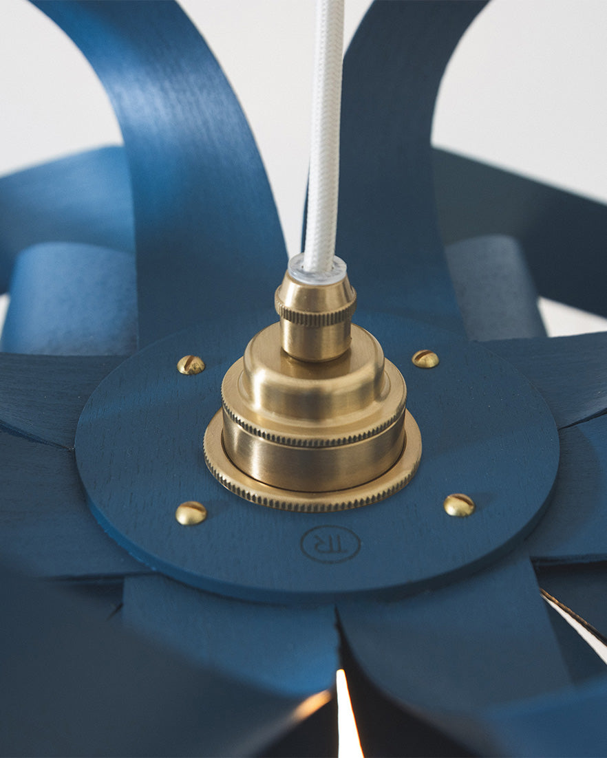 Scandinavian design principles and our sought-after aesthetic, merged. Formed from sustainably sourced wood, enveloped in a colourful, environmentally friendly paint, each Cove Small Skipper Pendant is individually handcrafted by our skilled workshop team using a dry construction method to last over a lifetime. Casting light up and out from its intricate wooden silhouette, the Skipper produces bright light and bold, contrasting shadows.