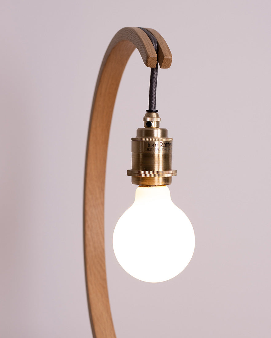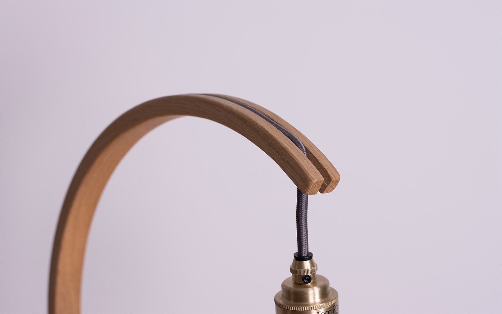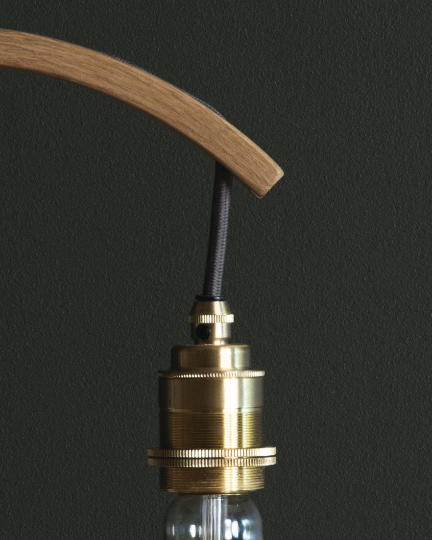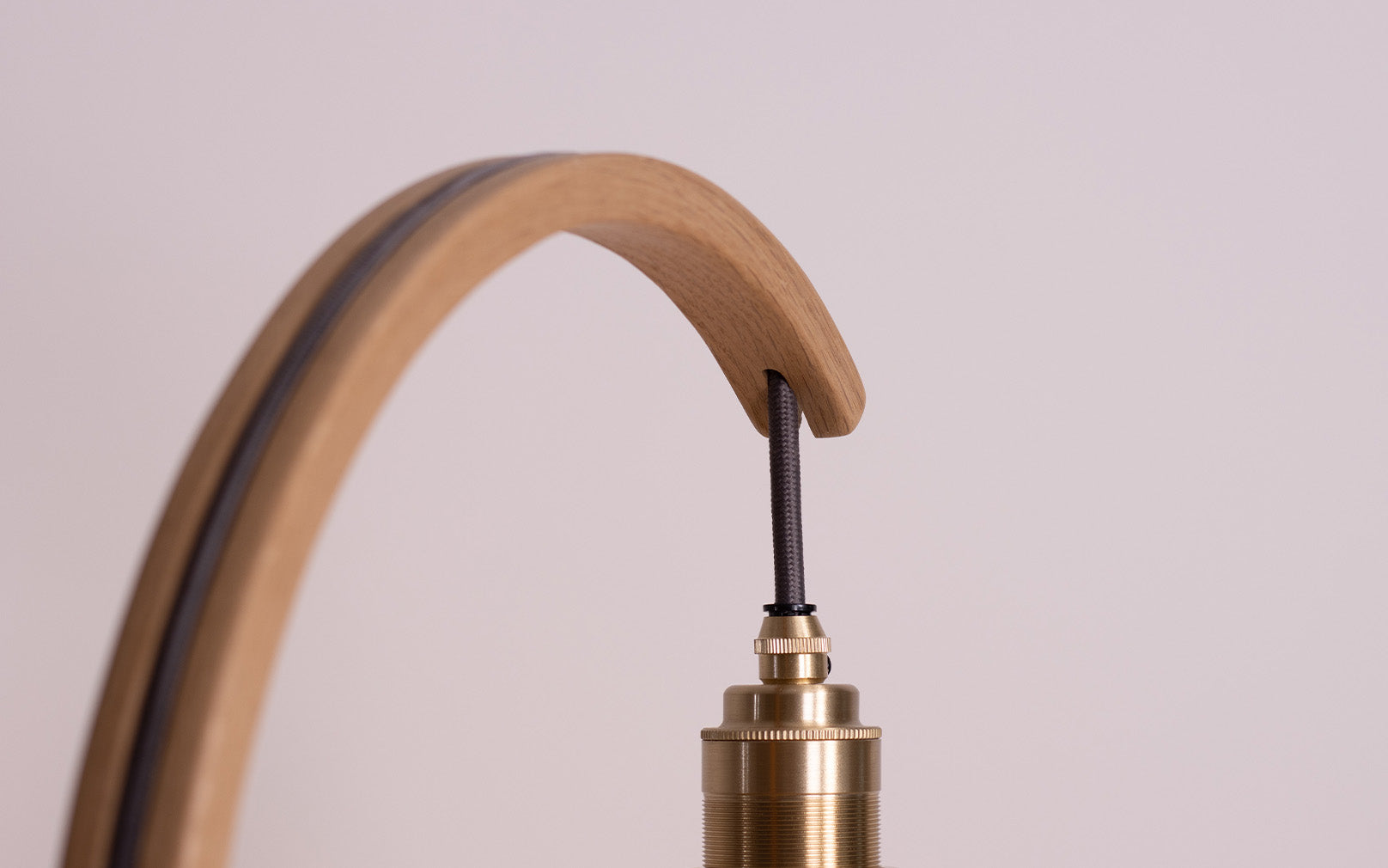 Sustainably sourced oak arches into a solid timber base. Along its curve, an exposed flex traces into a brass fitting, bringing a modern accent to a timeless, natural form. Radiating light in all directions, the Hanter blends an inviting ambience with a sharp design aesthetic.