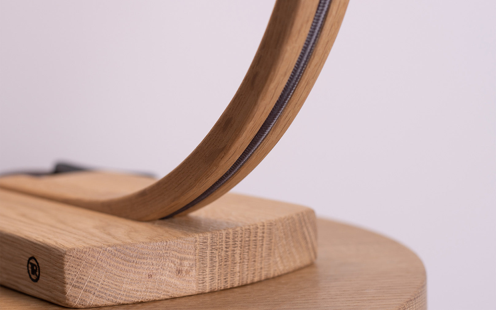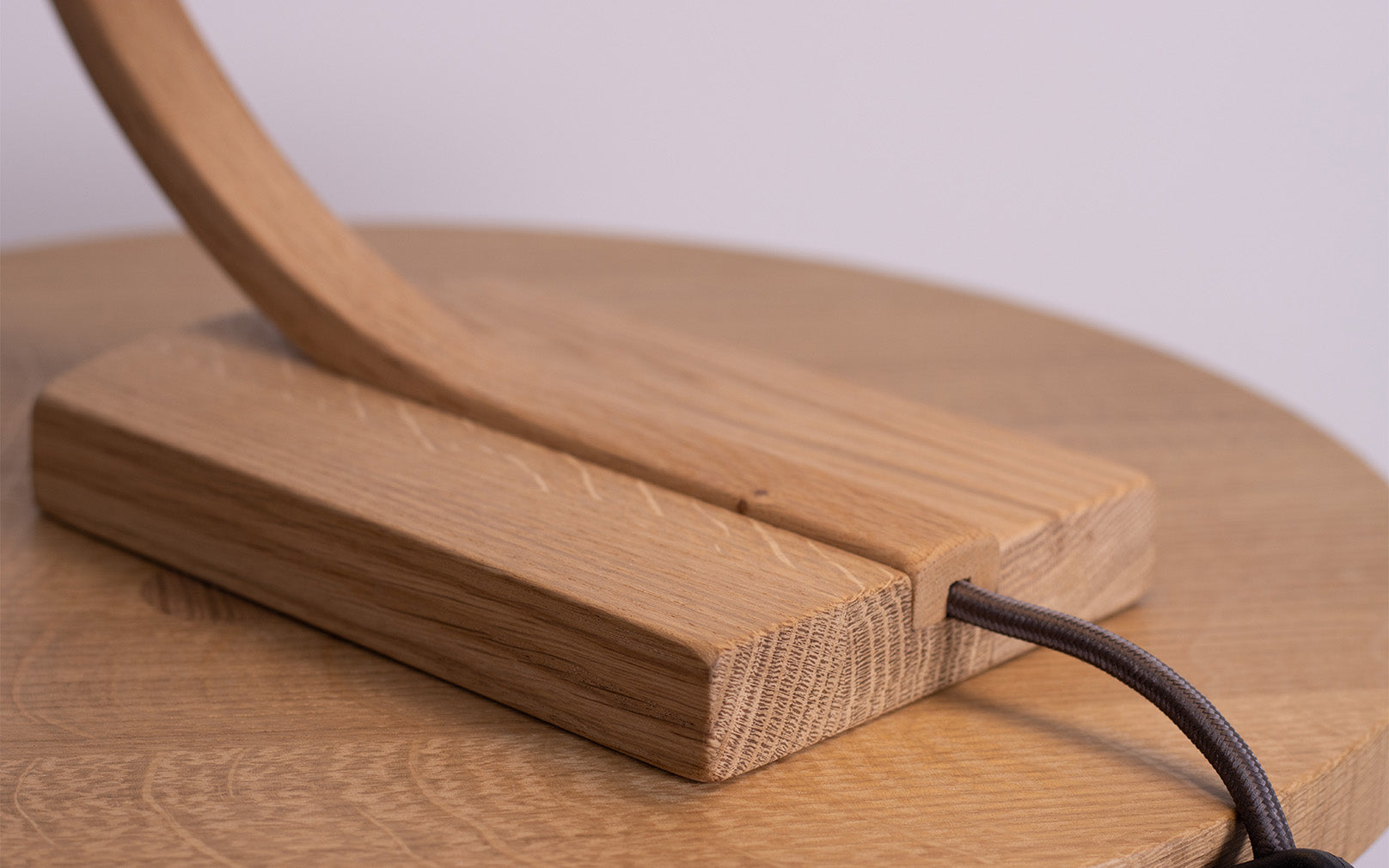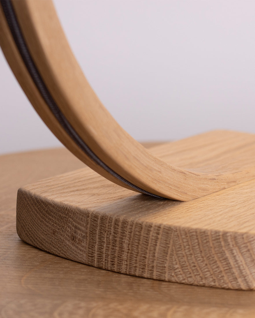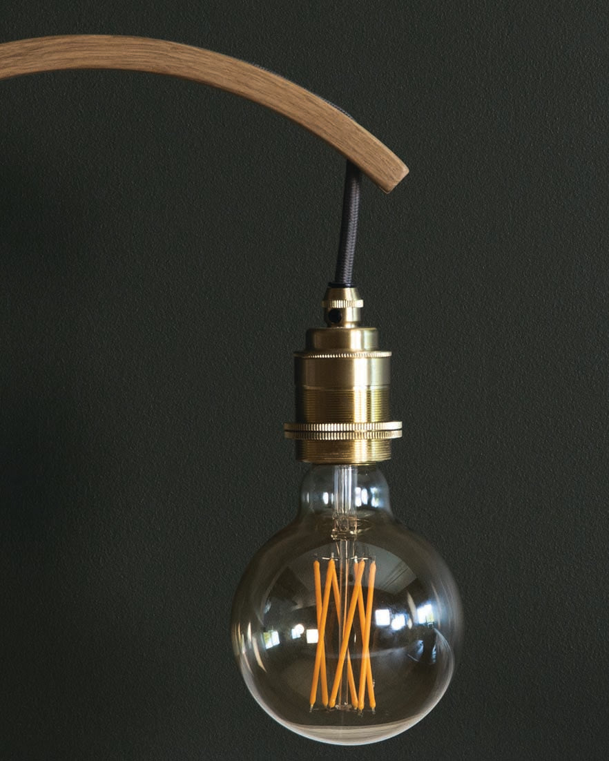 Sustainably sourced oak arches into a solid timber base. Along its curve, an exposed flex traces into a brass fitting, bringing a modern accent to a timeless, natural form. Radiating light in all directions, the Hanter blends an inviting ambience with a sharp design aesthetic.