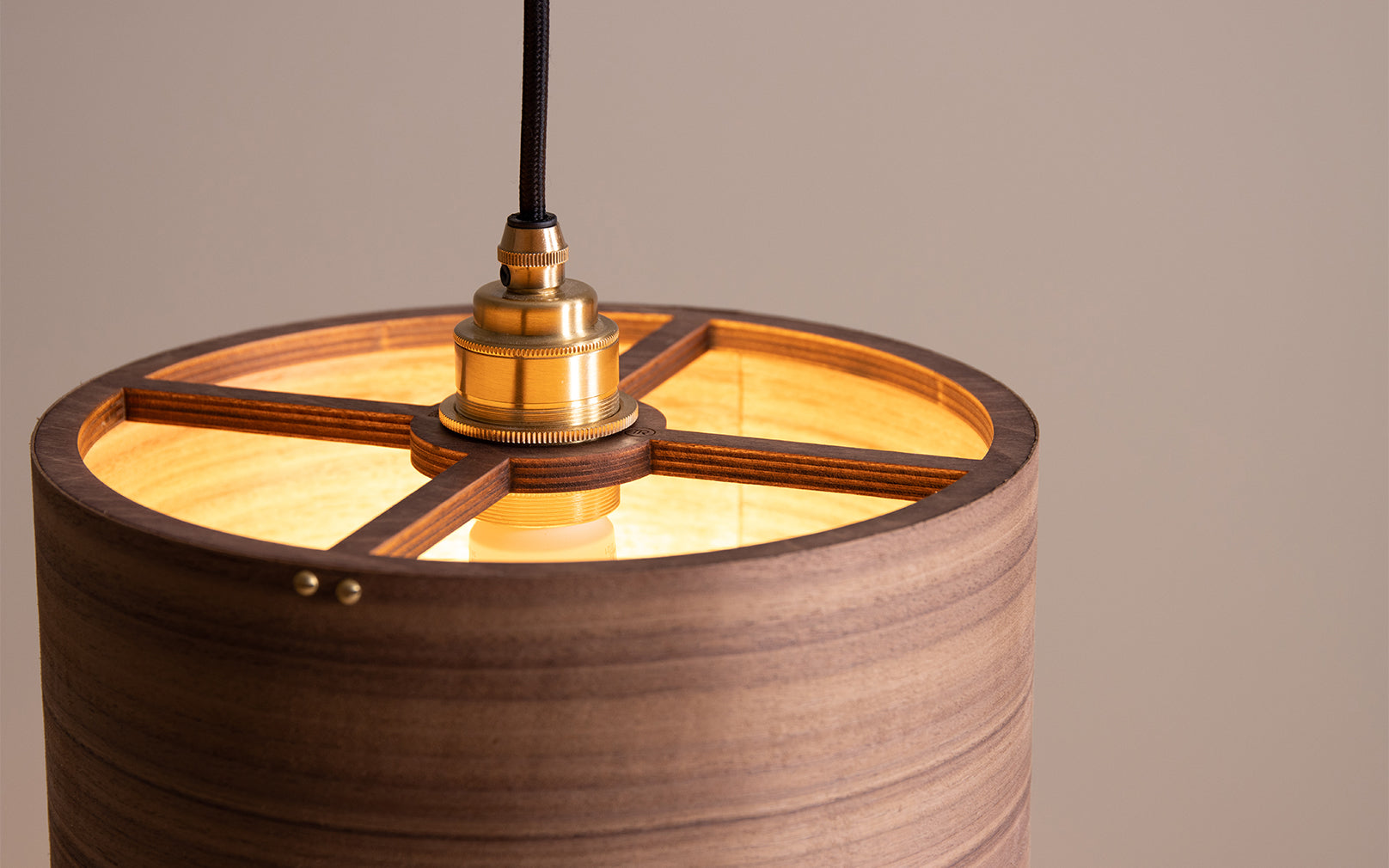Diffusing a warm glow into its surroundings, the elegant tier of sustainably sourced oak or walnut gently cocoons the bulb, allowing the organic wooden grain to take centre stage. The plywood inner structure supports the skilfully simple layer of timber, secured with brass screws to create a soft pool of downlight. The effortlessly elegant Kanna Pendant makes a stylish addition to your calming retreats, such as bedrooms and living spaces.