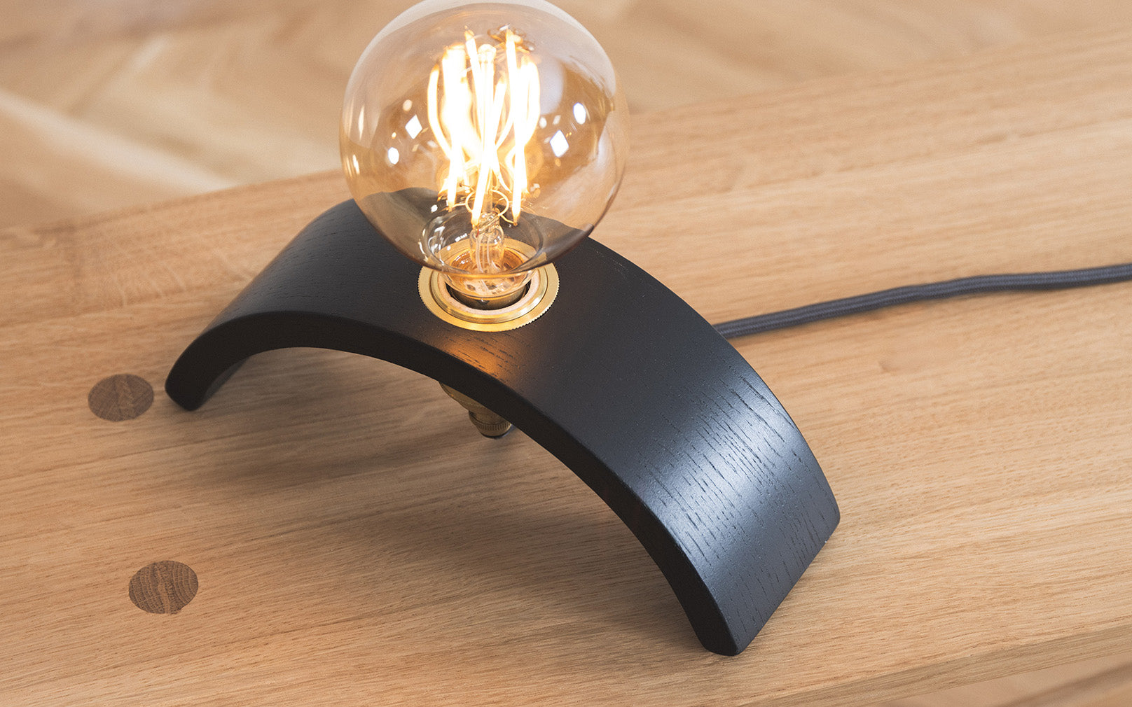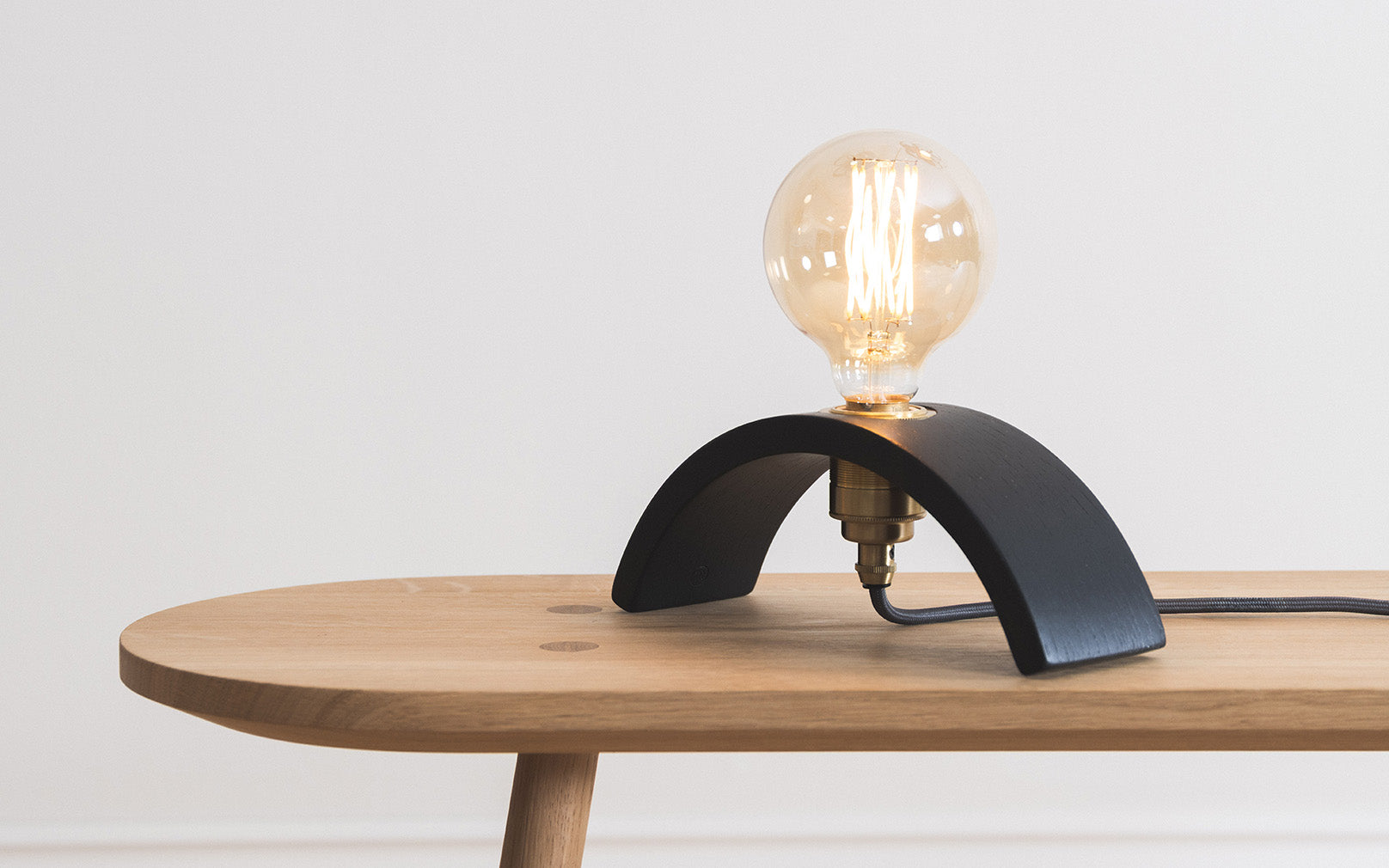 Inspired by industrial simplicity, the Archer Table Light is handcrafted from steam bent, ebonised wood and is accented by a brass light fitting that nestles into its architectural base. A striking, standalone table light design that showcases confident curves and a timeless aesthetic.