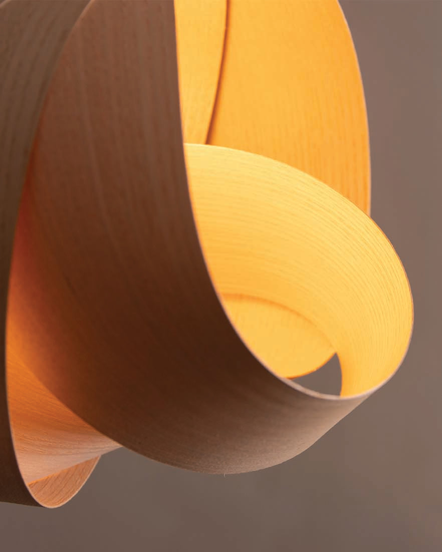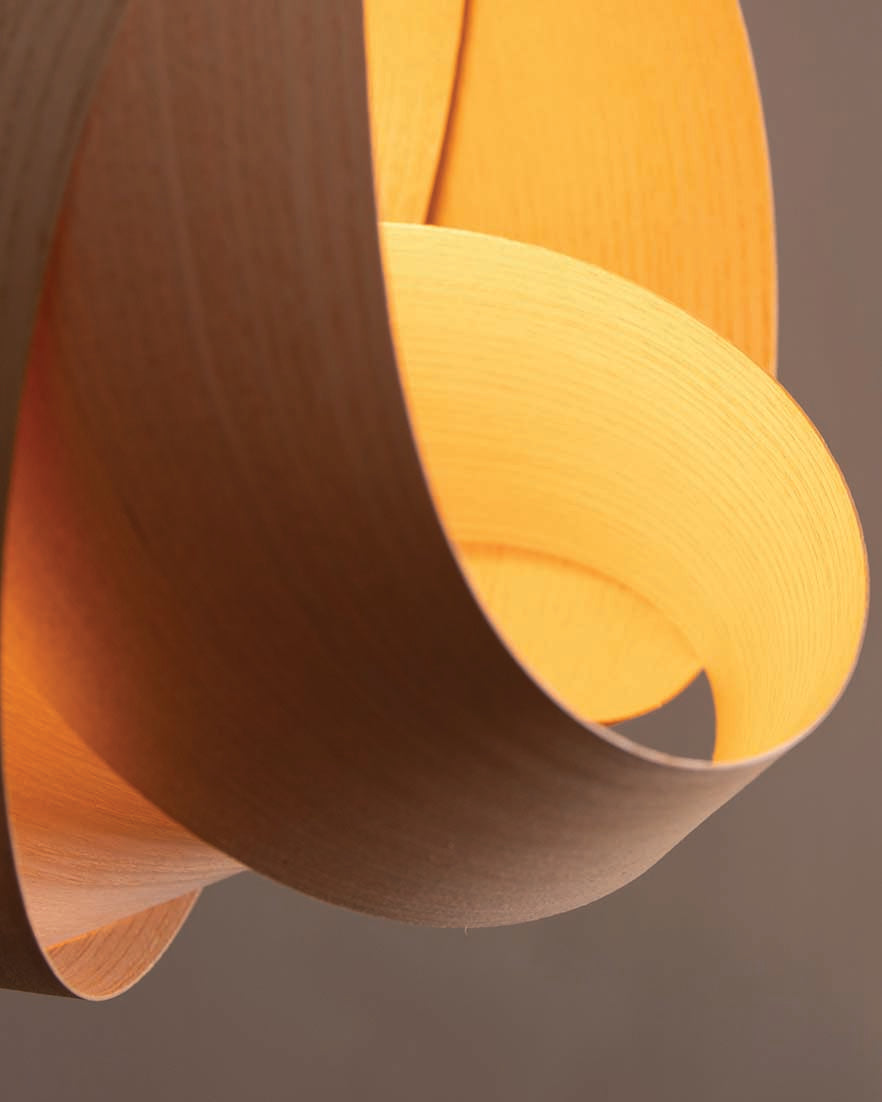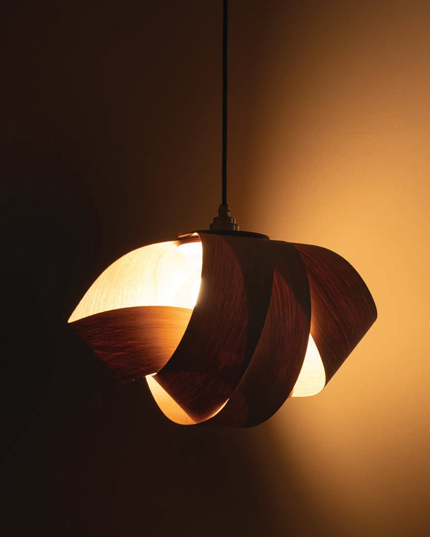 Adorning homes with the calming complexity of coastal forms, the Shore Pendant graces interiors with curving form. A soothing interpretation of barrelling waves, the Shore’s enveloping sustainably sourced ash, oak, or walnut is hand curved to provide a wooden lampshade that is different from every angle. Timber crescents are layered to partially cocoon the bulb, diffusing illumination through each cosy alcove. Suiting any space where a relaxed, tranquil atmosphere is required, the wooden Shore Pendant Light grounds any interior as a standalone design or gathered in clusters to mimic sculpturesque, shoreline scenes.