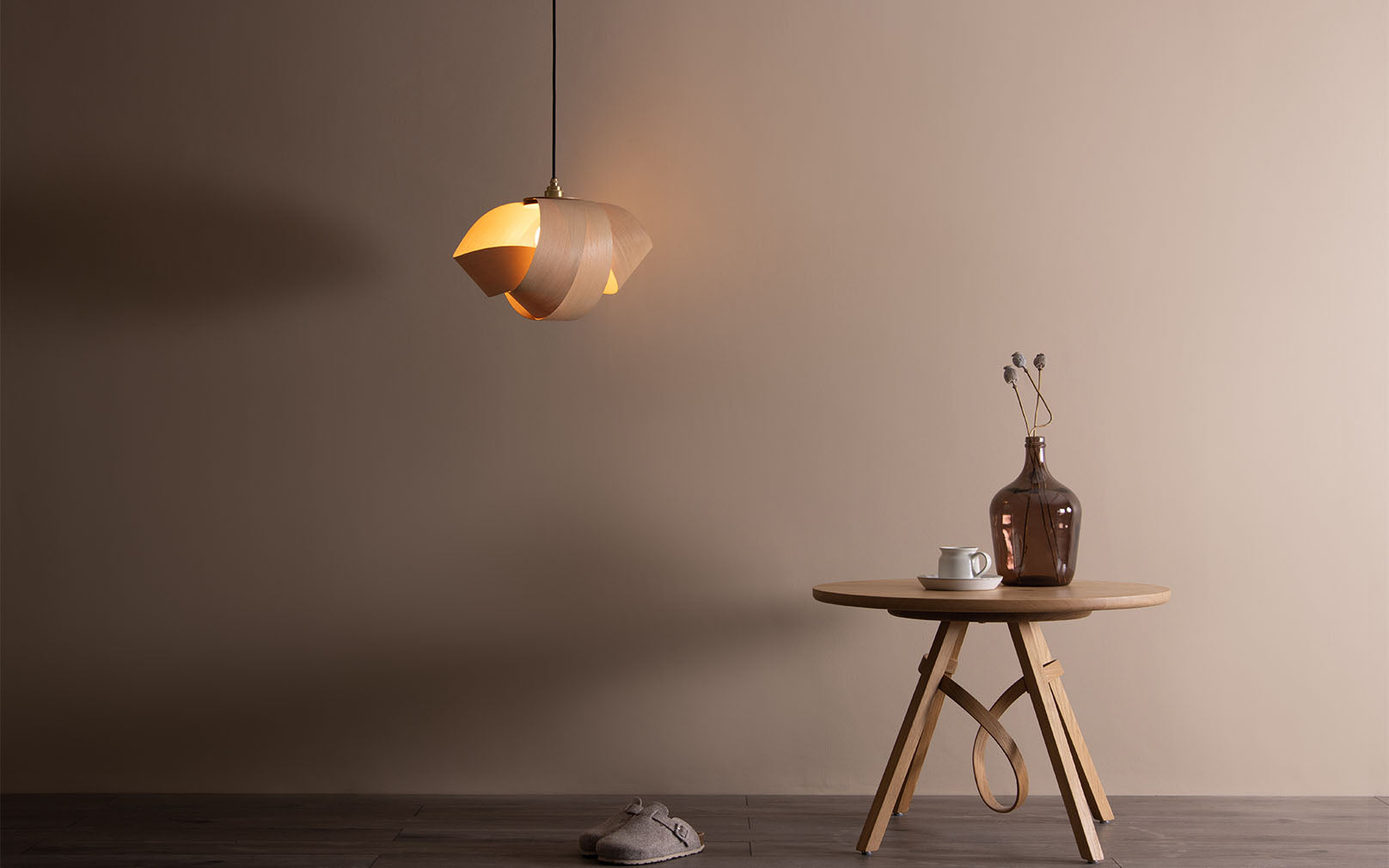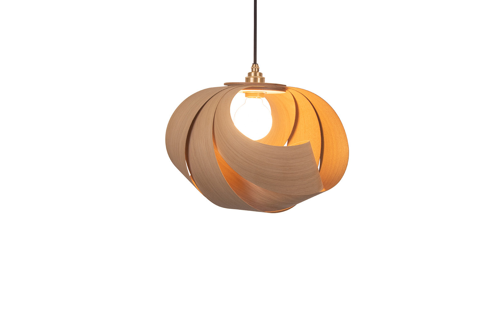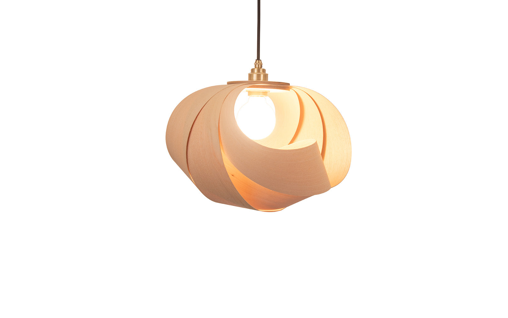 Adorning homes with the calming complexity of coastal forms, the Shore Pendant graces interiors with curving form. A soothing interpretation of barrelling waves, the Shore’s enveloping sustainably sourced ash, oak, or walnut is hand curved to provide a wooden lampshade that is different from every angle. Timber crescents are layered to partially cocoon the bulb, diffusing illumination through each cosy alcove. Suiting any space where a relaxed, tranquil atmosphere is required, the wooden Shore Pendant Light grounds any interior as a standalone design or gathered in clusters to mimic sculpturesque, shoreline scenes.