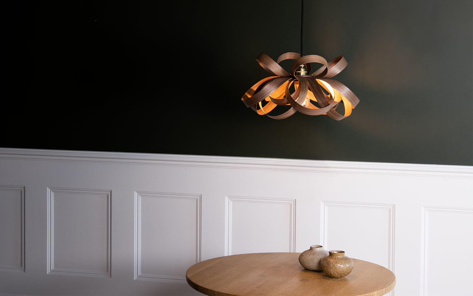 Scandinavian design principles and our sought-after aesthetic, merged. Formed from sustainably sourced ash, oak or walnut wood, each Small Skipper Pendant is individually handcrafted by our skilled workshop team using a dry construction method to last over a lifetime. Casting light up and out from its intricate wooden silhouette, the Skipper produces bright light and bold, contrasting shadows. A bestseller for good reason.