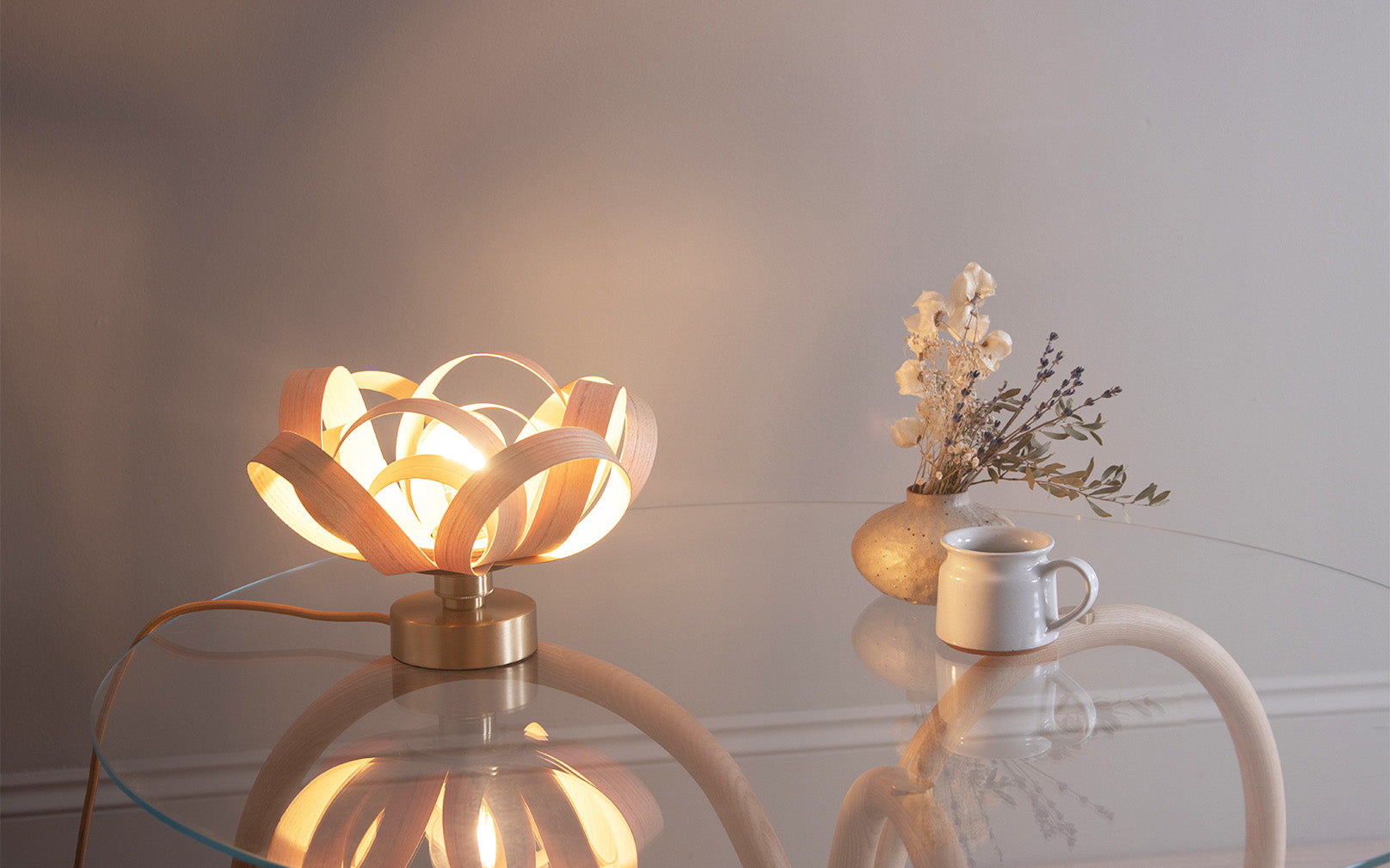 Scandinavian design principles and our sought-after aesthetic, merged to create our most iconic design. A unique wooden table lamp that celebrates natural materials and handcrafted skill, the Skipper Table Light is created from twelve individual, sustainably sourced ash, oak or walnut wood petals and designed to produce golden light upwards and outwards, and eye-catching shadow effects in equal measure. Well suited for hallways, living spaces and home offices, the Skipper Table Light adds personality in abundance.