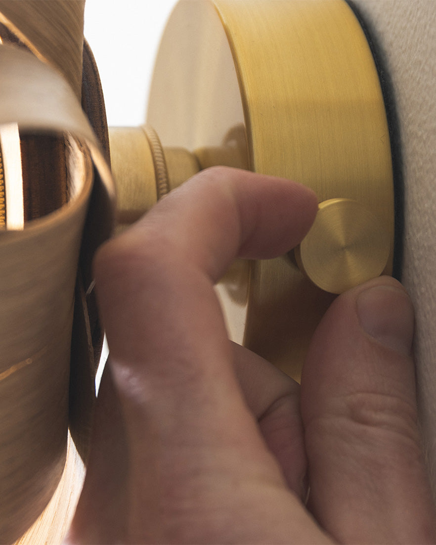 Materials: Sustainably sourced ash, oak or walnut shade. Oak wall bracket. Brass lamp holder and base.