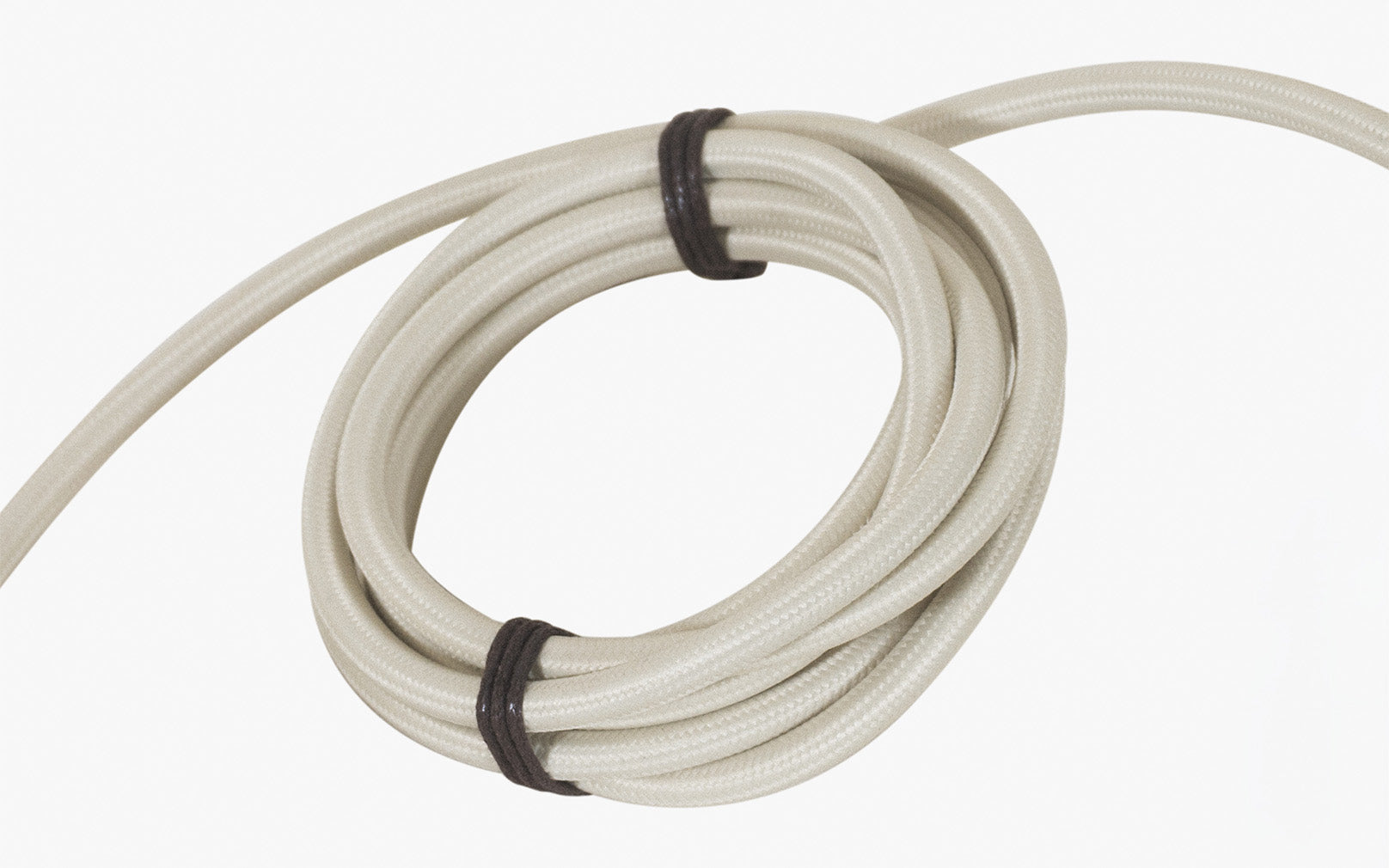 Main materials: Brass bulb holder, off-white cord material flex, steel ceiling rose, brass screws