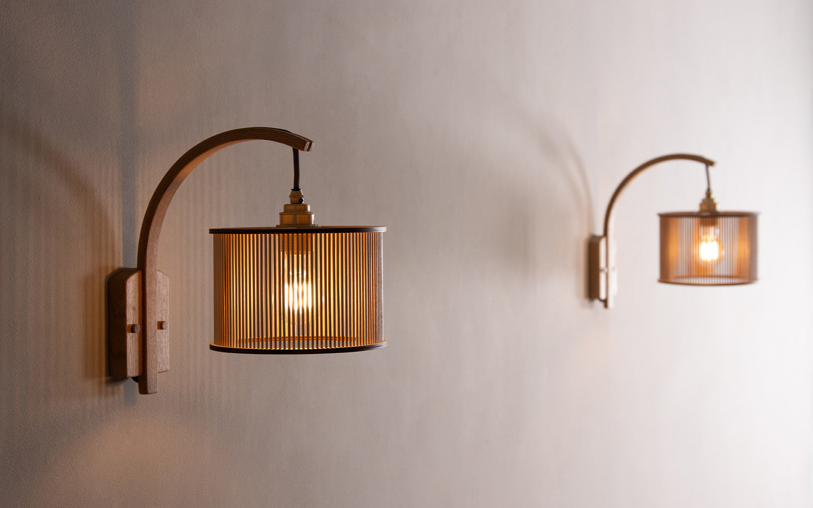 Handcrafted in sustainably sourced solid oak, the Stem's steam bent curve arches from its roots to showcase the energising Artus shade, which creates an abundance of personality. Use the wooden Artus X-Small - Stem Wall Light to build character in hallways, living spaces or bedrooms alike. Radiating invigorating illumination; this statement wooden wall light is the ultimate balance between form and function.