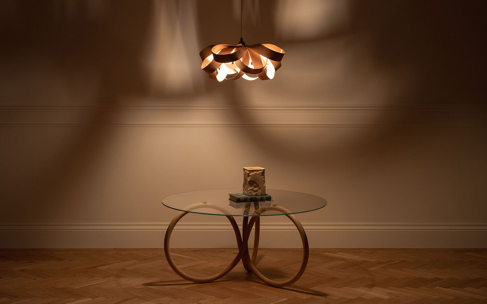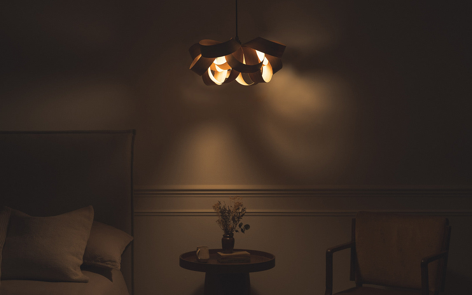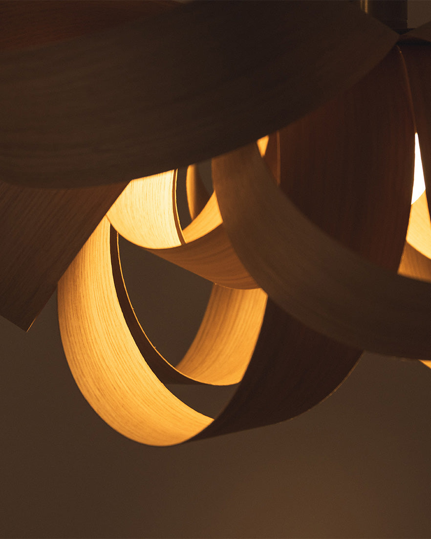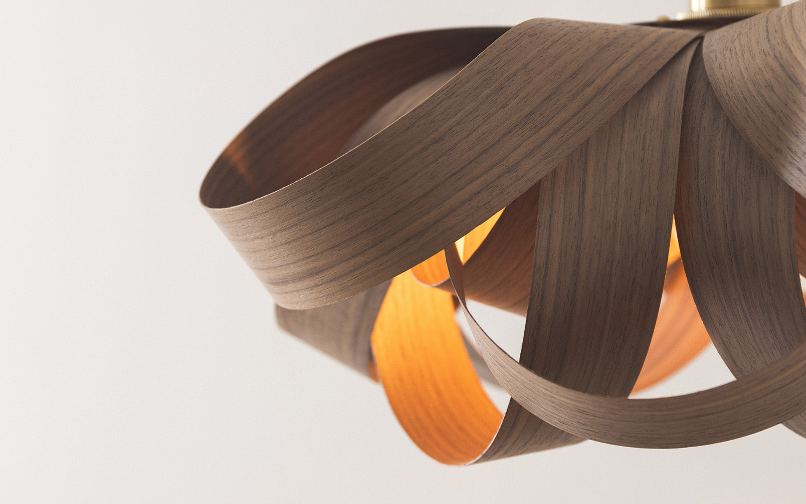 Hand curved from 16 lengths of sustainably sourced wood to provide an organic shape that emits a wonderful array of light and shadow. The Bloom Lighting range includes statement wooden lampshades, which hang beautifully above a dining table, bed, or create a welcoming radiance in your entranceway.