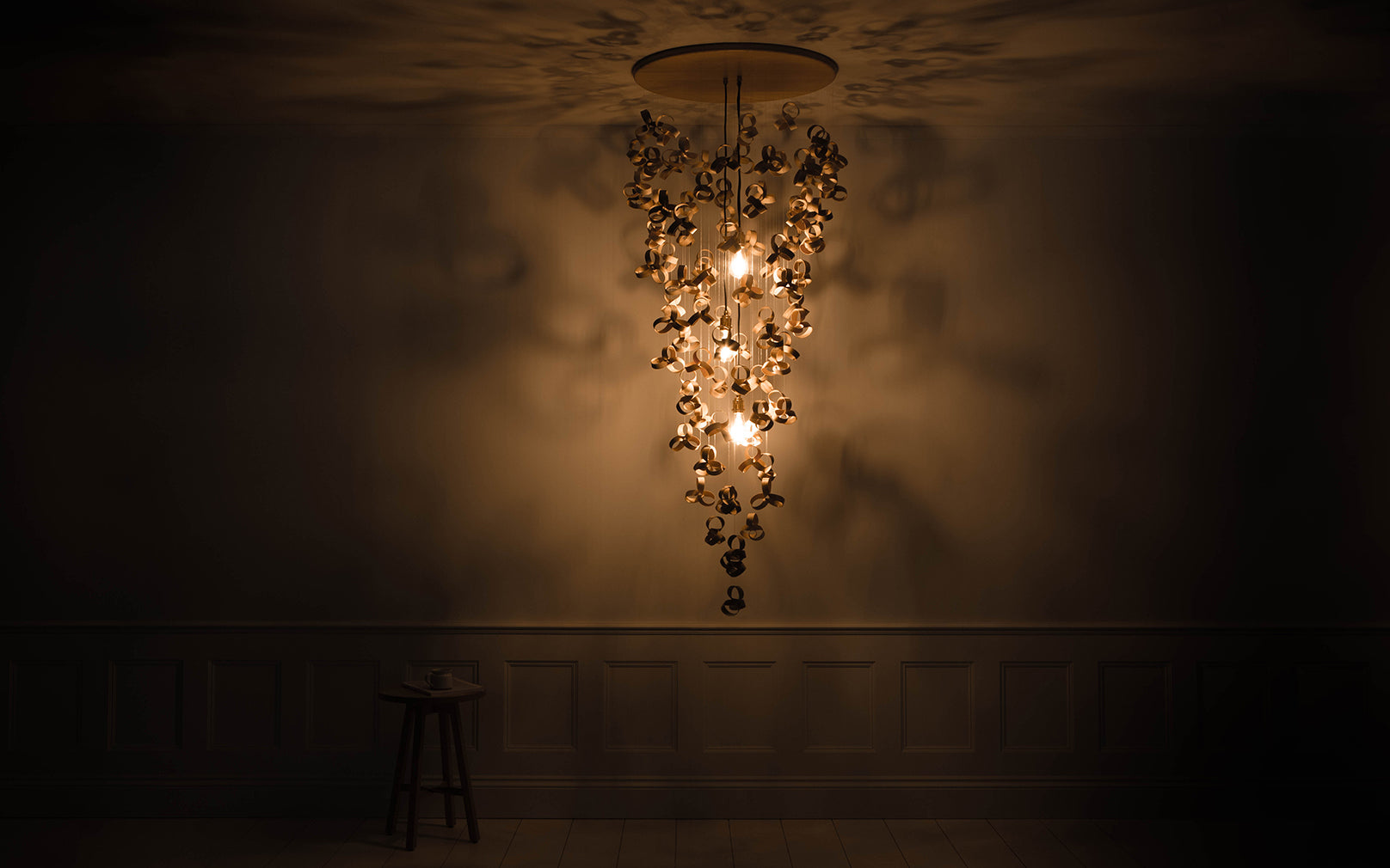 Featherlight curlicues dance in the air. Evoking a murmuration of starlings sweeping across the sky, our Flock Chandeliers cast shapes and shadows at every turn.