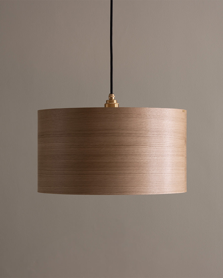 Diffusing a warm glow into its surroundings, the elegant lampshade made of sustainably sourced oak or walnut gently cocoons the bulb, allowing the organic wooden grain to take centre stage. The plywood inner structure supports the skilfully simple layer of timber, secured with brass screws to create a soft pool of downlight. The effortlessly elegant Kanna Drum Pendant Large makes a bold addition to your calming retreats, such as bedrooms and living spaces.