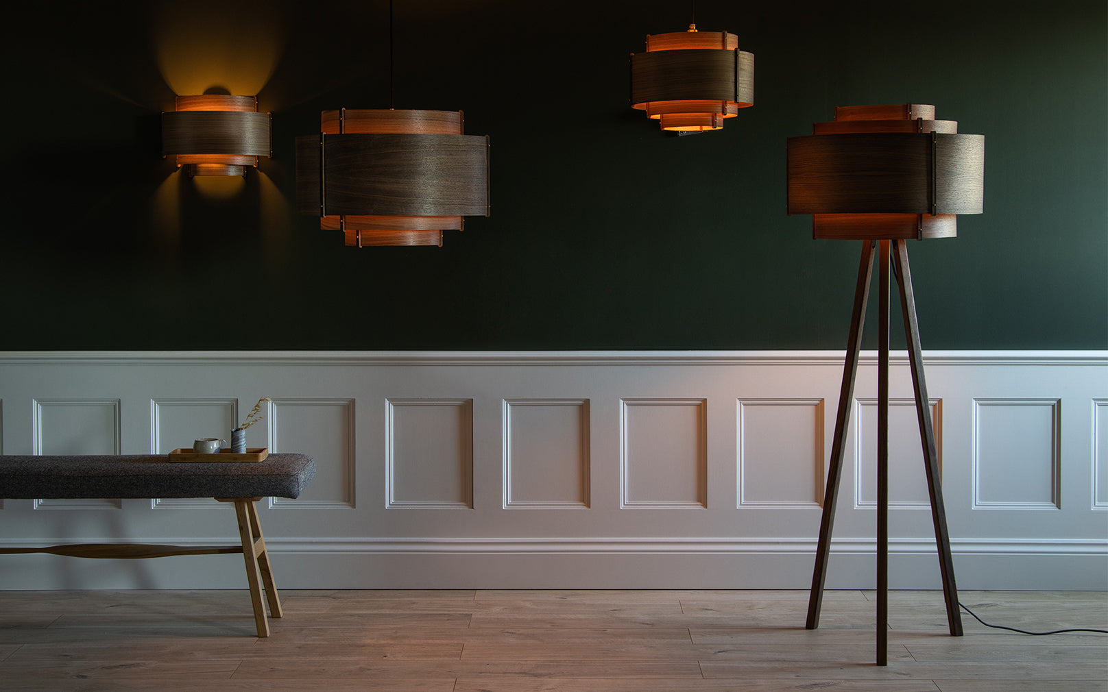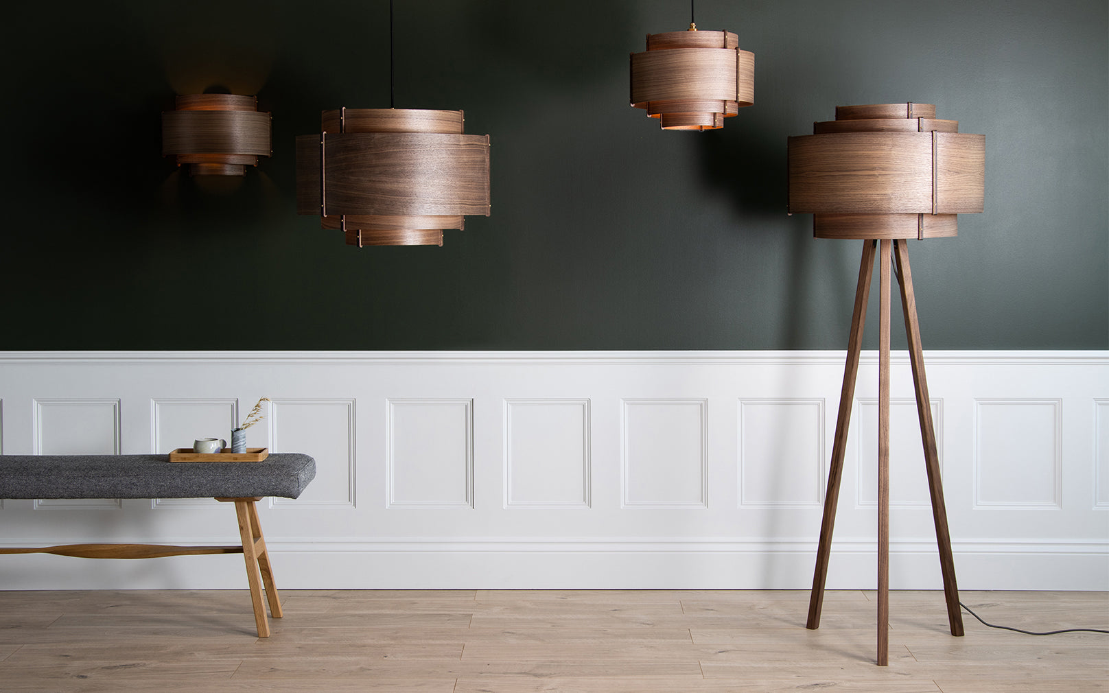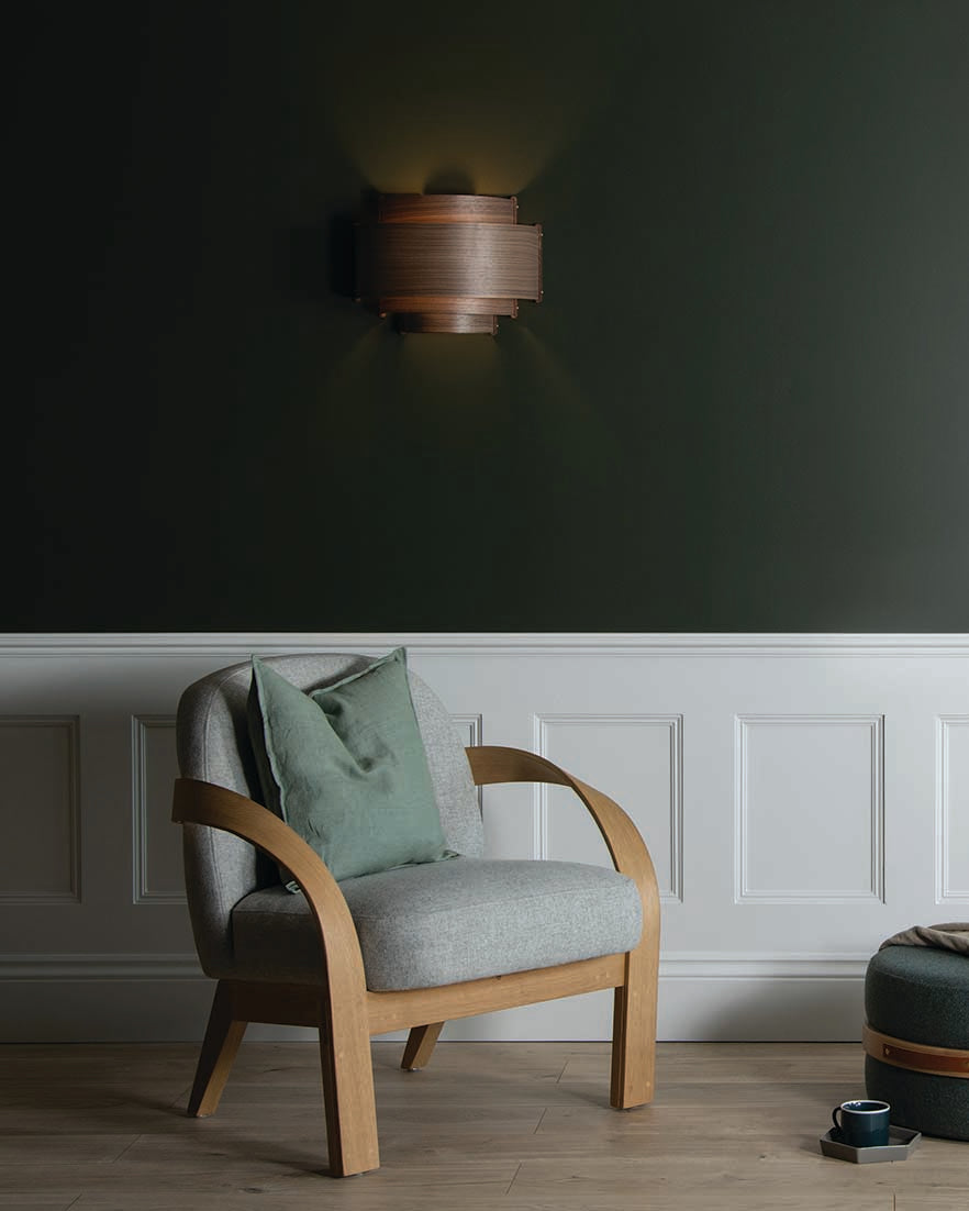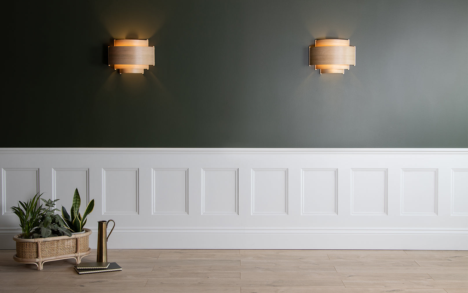 Meaning 'level' in Cornish, the Leven Wall Light is handcrafted using four tiers of curving oak or walnut timber that tautly wrap around a central plywood frame. Each layer of sustainably sourced wood builds a balanced silhouette of careful craftsmanship. With a blend of Scandinavian and Art Deco aesthetics, use the wooden Leven Wall Light to illuminate hallways, living spaces and bedrooms alike as the versatile downlighting effect is suited to a myriad of interiors.