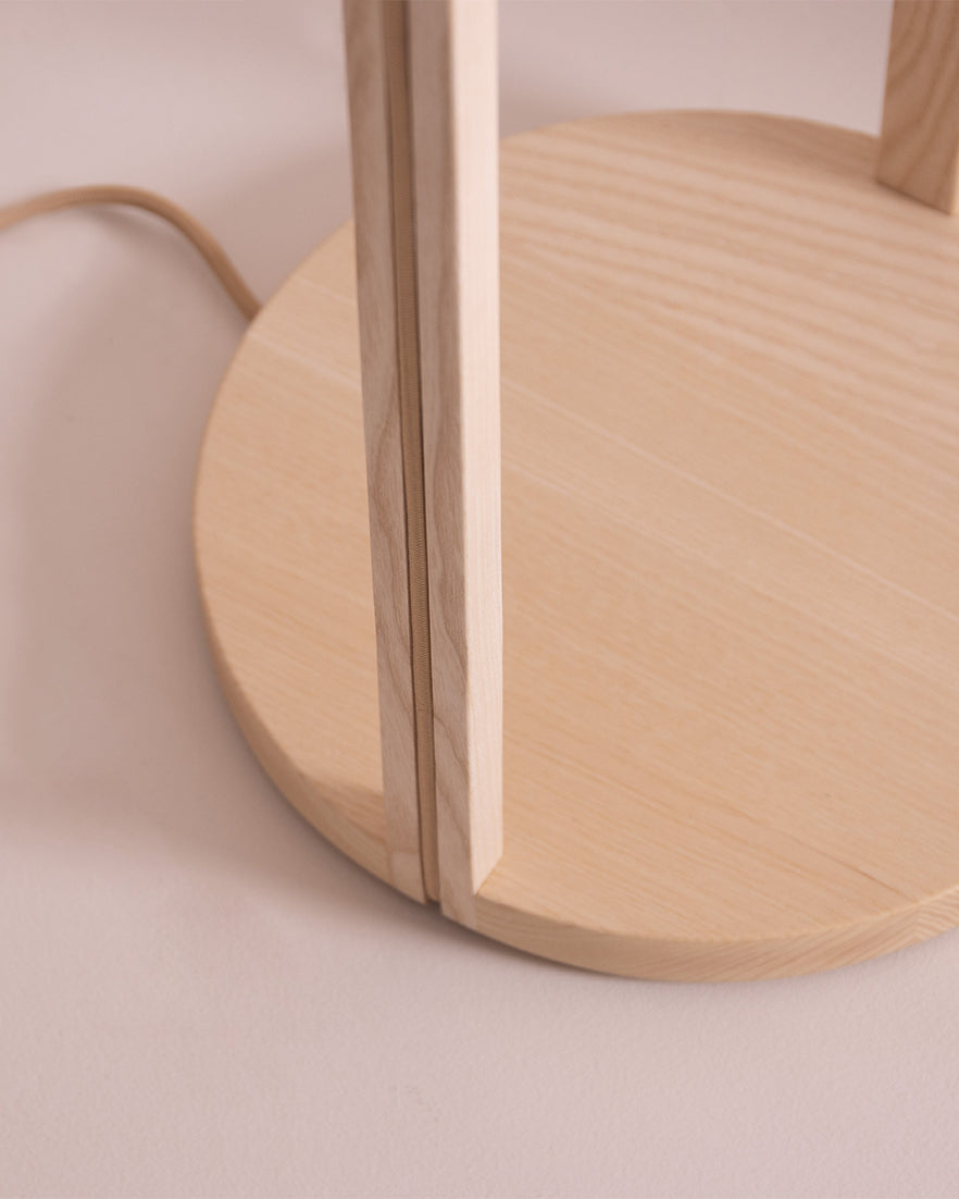 Main materials: Sustainably sourced ash, opaque glass and brass
