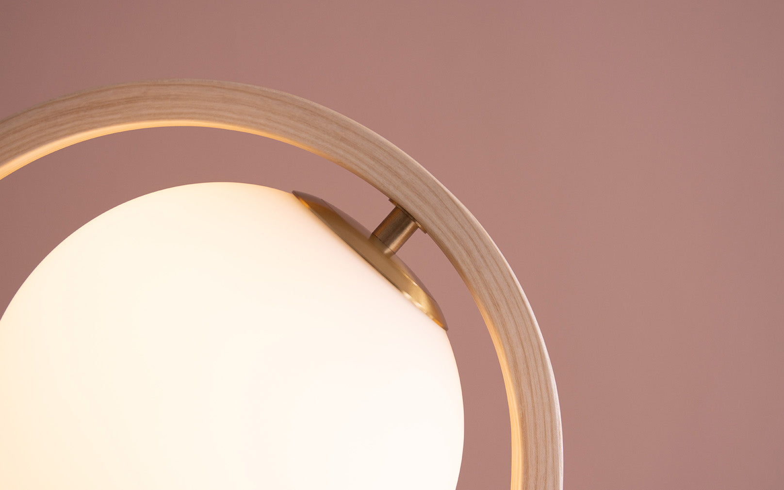 Inspired by the elliptical orbits of the planets and moons that line the inner edges of our vast solar system, the Loer Lighting Range brings weightless illumination to any space it reaches. Combining a beautiful translucent glass sphere, sustainable steam bent ash wood and brushed metallic brass, the Loer showcases minimal, nature-inspired design at its finest.