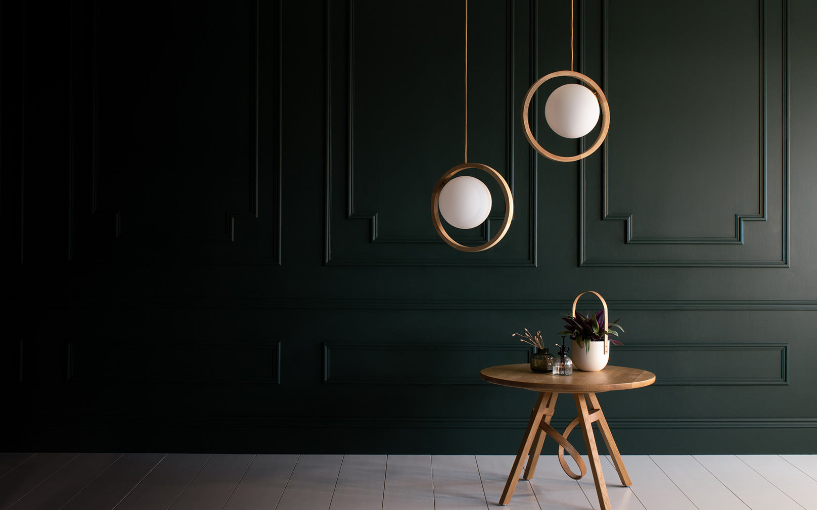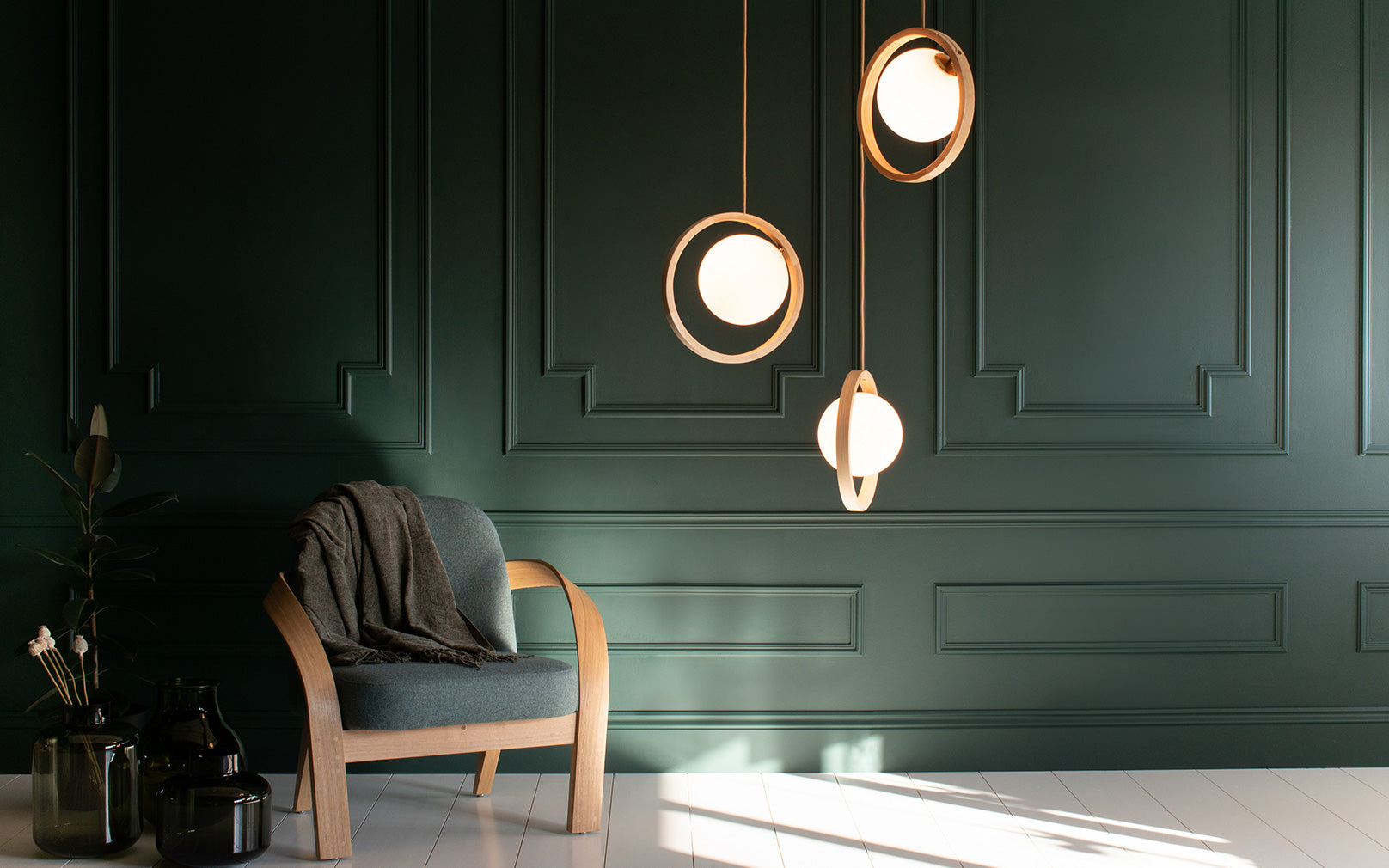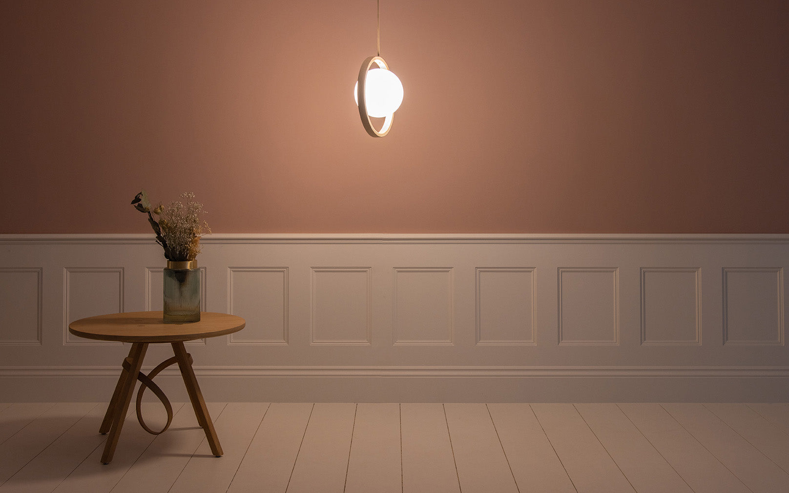 Meaning ‘Moon’ in Cornish, the Loer Pendant showcases a translucent glass orb with clouded bands of warm celestial white light which suspends within a sleek halo of supple ash wood. Held in place by brass detailed fixings that reflect the soft illustrious glow of the spherical globe when illuminated, the opulent Loer Pendant looks equally as eye-catching when switched off. This contemporary wooden light is suited to an array of interiors and property styles and looks particularly striking suspended in clusters.