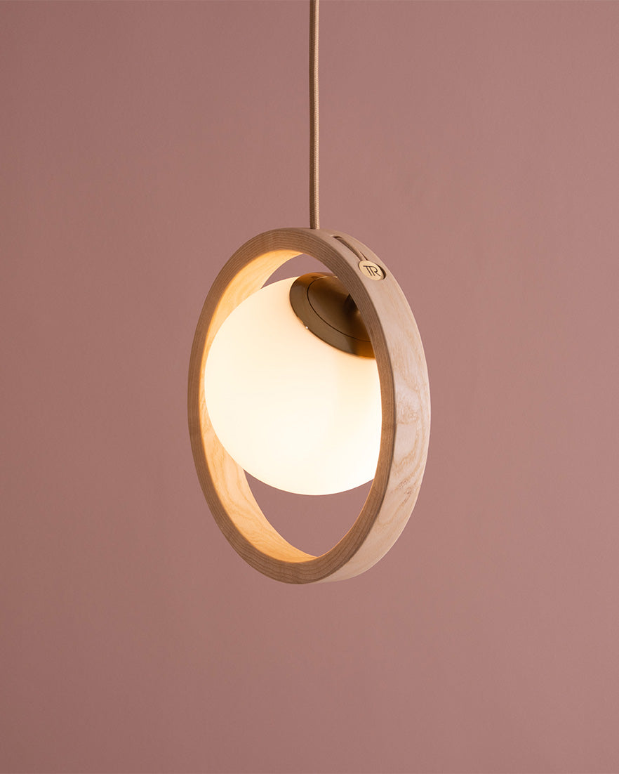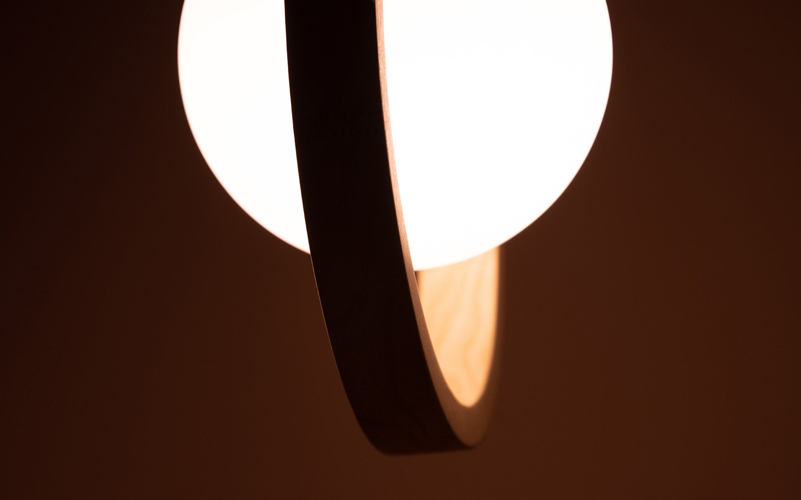 Inspired by the elliptical orbits of the planets and moons that line the inner edges of our vast solar system, the Loer Lighting Range brings weightless illumination to any space it reaches. Combining a beautiful translucent glass sphere, sustainable steam bent ash wood and brushed metallic brass, the Loer showcases minimal, nature-inspired design at its finest.