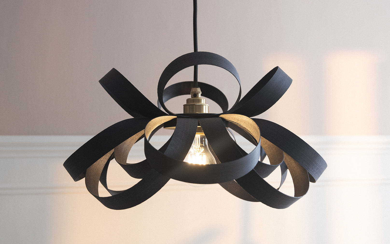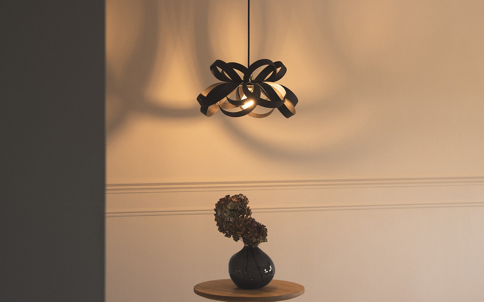 After huge success as a limited edition run earlier this year, we have crafted the full Skipper Lighting Range in this stylish, dark variation. Combining Scandinavian design principles and our sought-after curved aesthetic, this small black pendant is formed from sustainably sourced, poplar wood. Each Noctis Skipper Pendant Small is individually handcrafted by our skilled workshop team in Cornwall. Casting light up and out from its intricate wooden silhouette, the Skipper produces bright light and bold, contrasting shadows, making it the perfect pendant for compact living spaces, cosy corners and monochrome interiors.