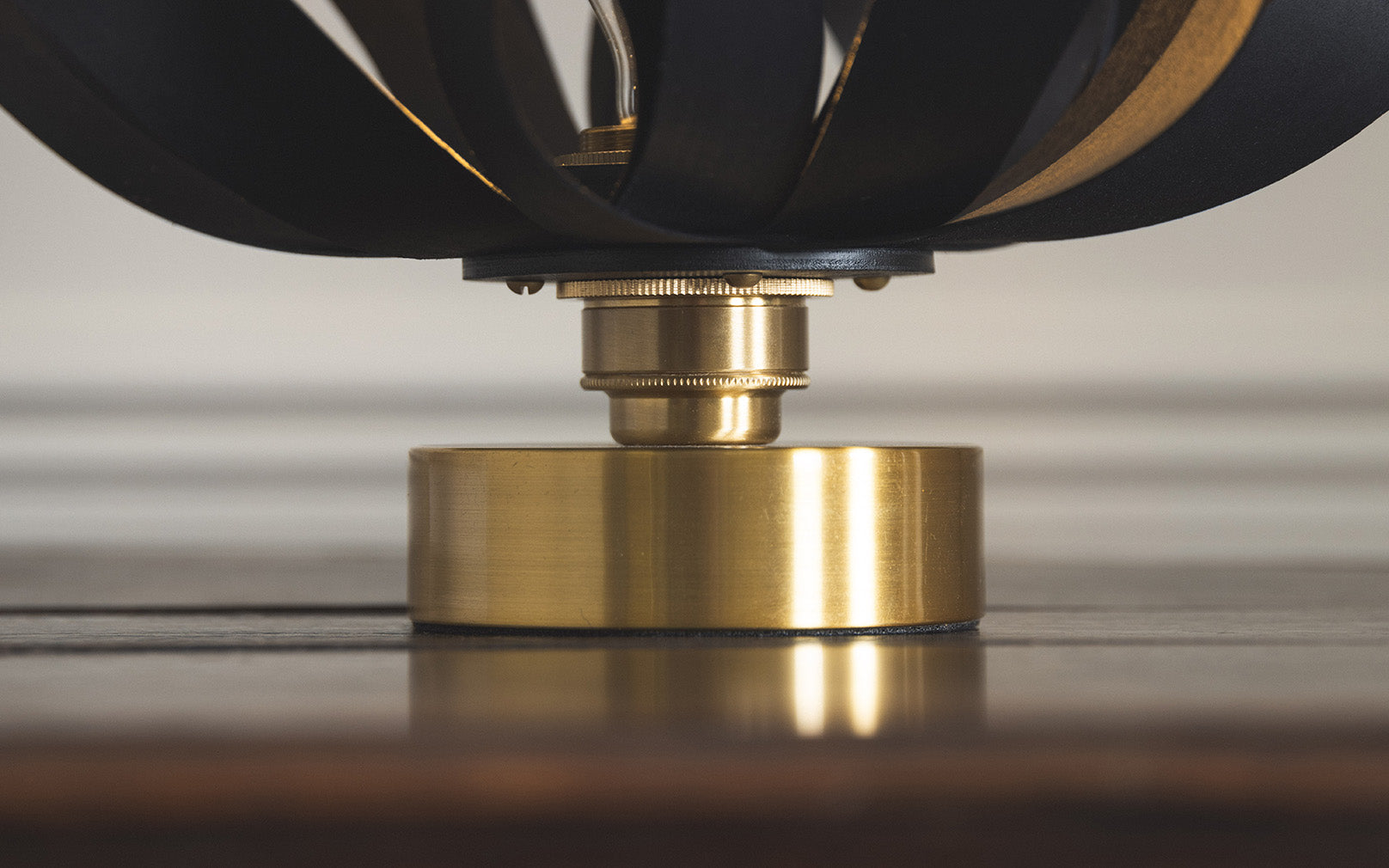 Materials: Sustainably sourced ebonised wood. Brass lamp holder and base.