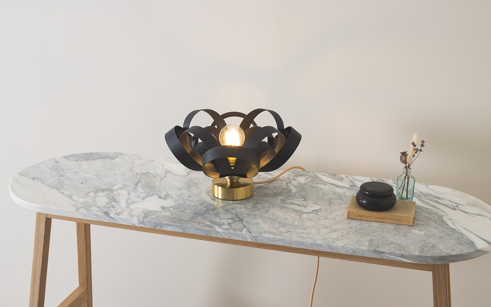 The Noctis Skipper Table Light merges Scandinavian design principles with our signature curved aesthetic. Crafted from beautifully ebonised, sustainably sourced poplar, this achromatic wooden table lamp features a hand-shaped open structure that radiates light upward and outward, creating a captivating interplay of brightness and shadow. This truly timeless design is perfect for adding an abundance of personality to hallways, living spaces and home offices.