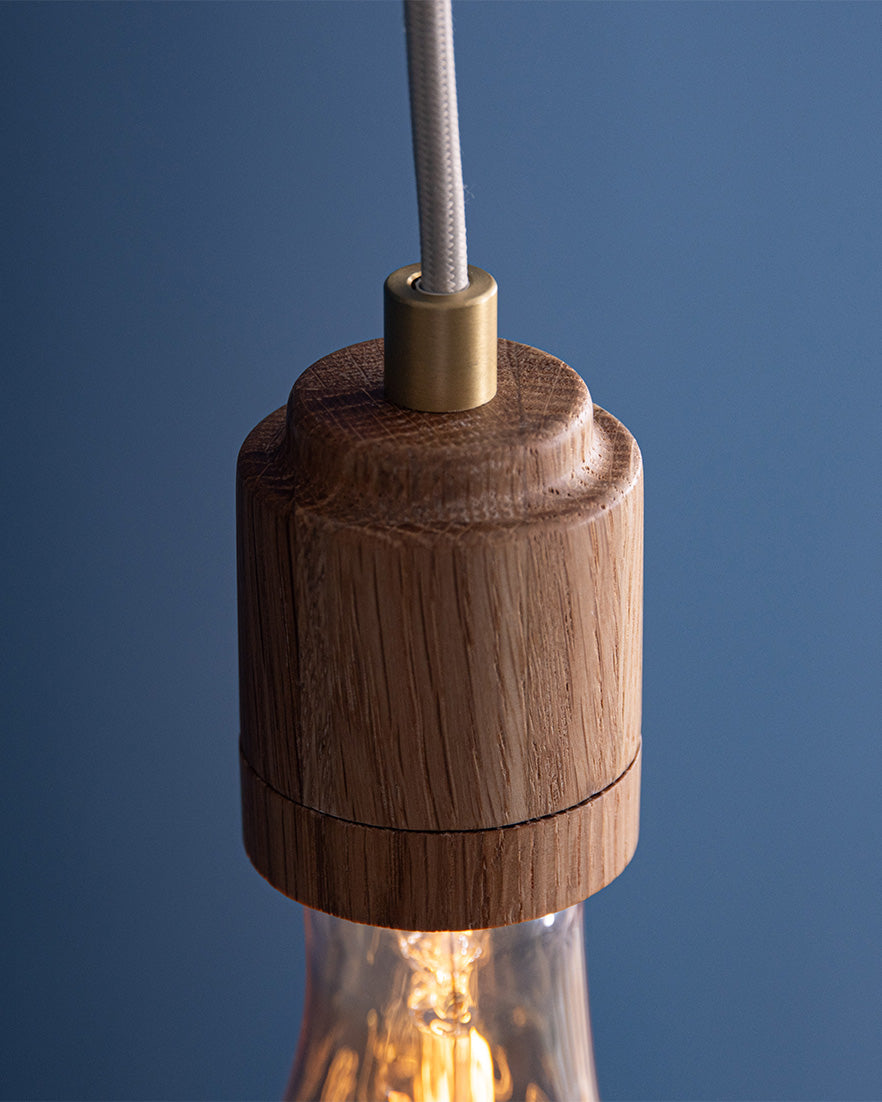 Main materials: Oak bulb holder, cord material flex, oak ceiling rose, metal internal components