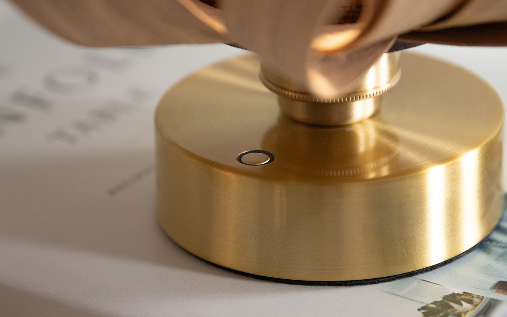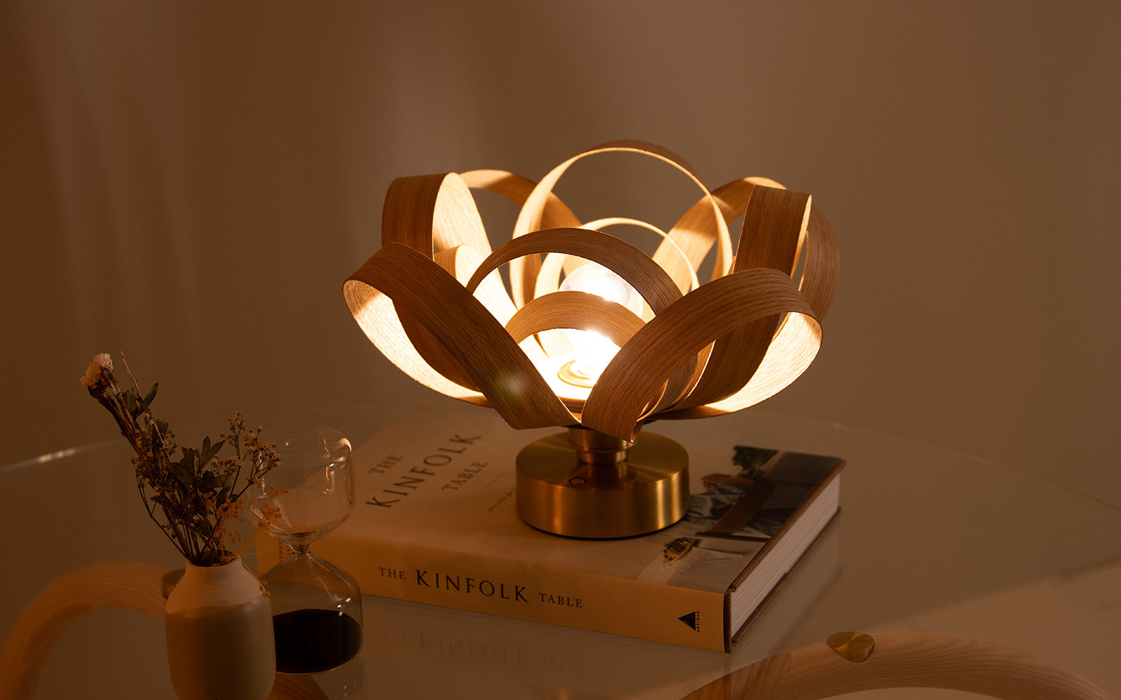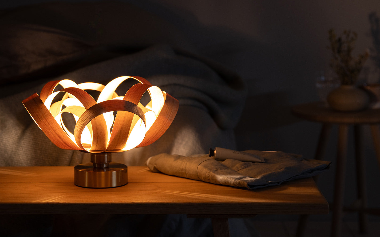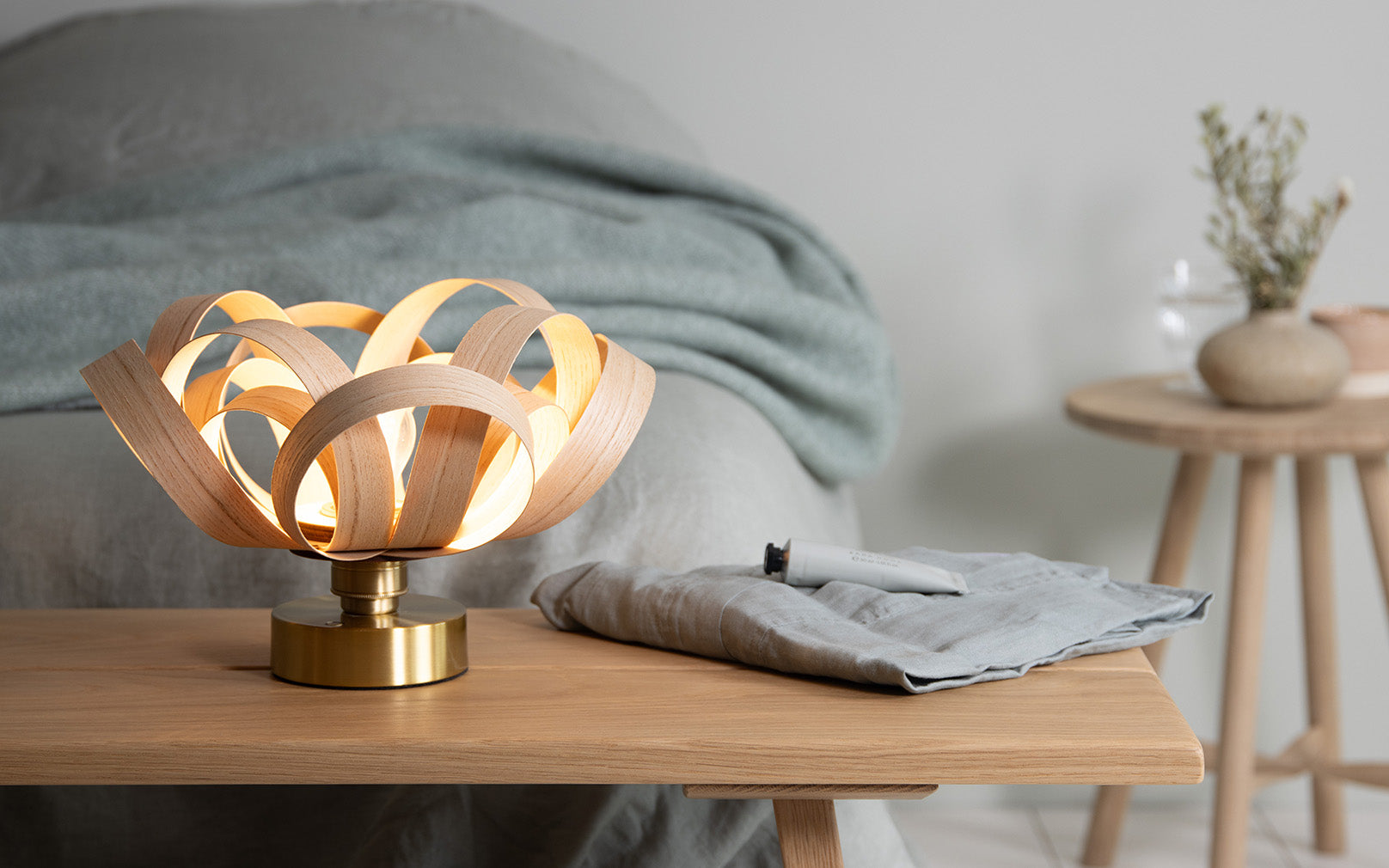 Scandinavian design principles and our sought-after aesthetic, merged to create our most iconic design. Stylish, sustainable and rechargeable. A portable table lamp that celebrates natural materials and handcrafted skill, the wireless table light is created from twelve individual, sustainably sourced ash, oak, or walnut wood petals and designed to produce golden light upwards and outwards. Dimmable with a touch of a button, the conveniently cordless and rechargeable table light is perfect for adding an abundance of personality to hallways, living spaces and home offices.