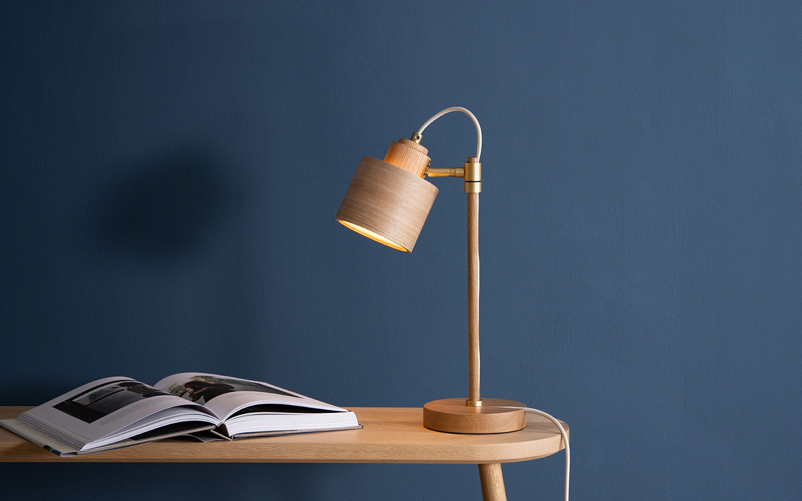 Handcrafted with precision, this wooden desk light welcomes change, allowing you to not only control the direction of the boundless glow, but also offers height adjustment along its robust, sustainably sourced wooden foundations. An oak branch grows proudly from a round wooden base to showcase our minimalist Kanna Shade, which diffuses a serene glow upon its surroundings. Perfect for adding focused light to reading nooks, workspaces, or bedside tables, the Spire Table Light seamlessly adapts to suit your space.