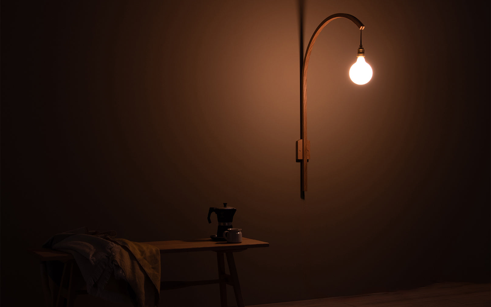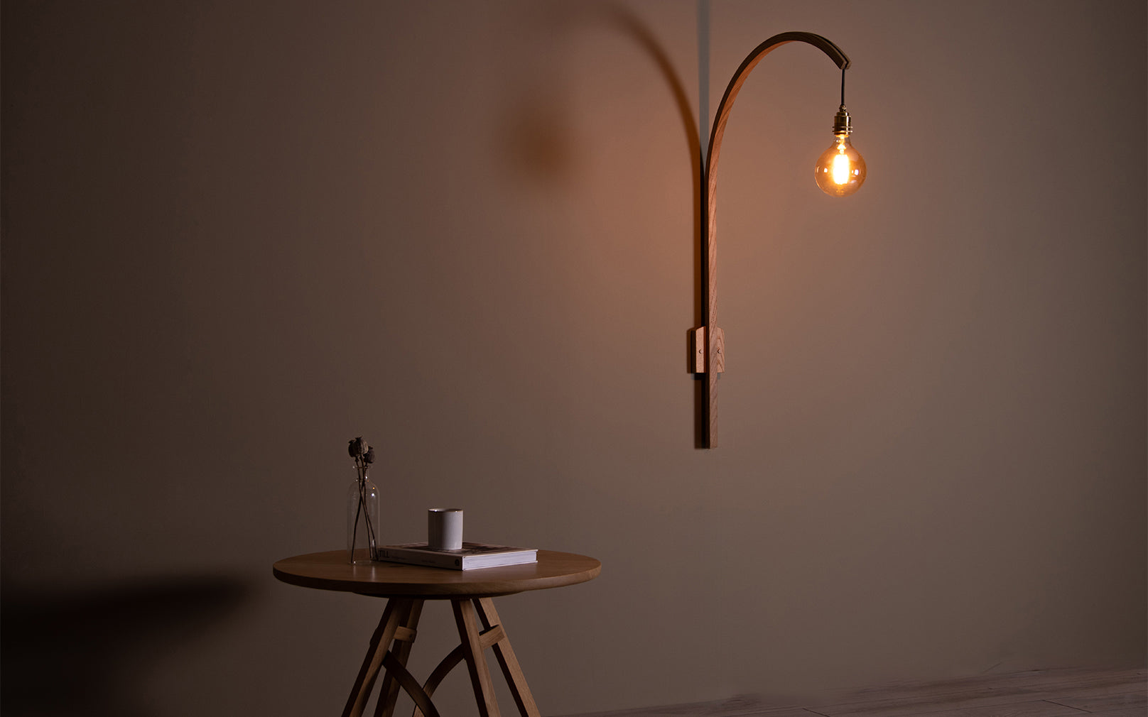 An arc of sustainably sourced oak grows up and out from a solid base, suspending a bulb at perfect height to display boundless light across your space. The Tilow’s steam bent design will divide and balance your interior with ease as it illuminates with a warm, welcoming glow. Whether invited into your home as a calming hallway glow or as living space illumination, the Tilow Wall Light Large extends unique, striking design to your walls.