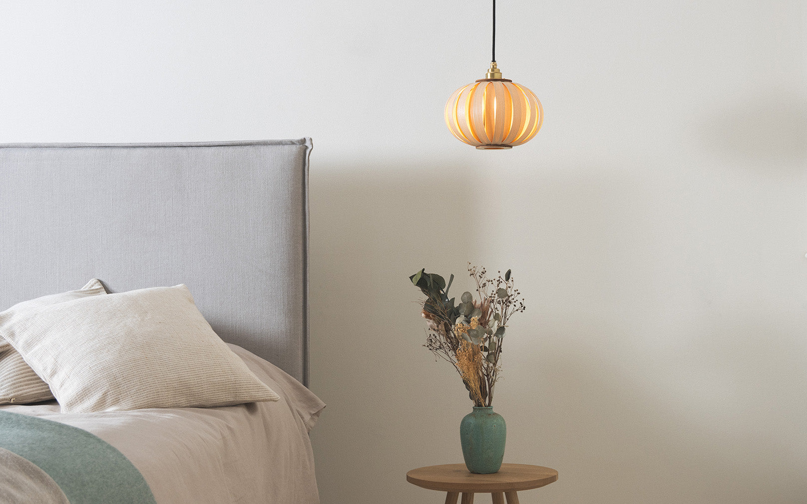 32 taut curves fused together with laser cut birch plates are carefully manipulated to conceal the bulb. Sustainable ash, oak or walnut sees light escape through the seams of this wooden lampshade, creating pools of brightness in the dark. Adding comforting form to scandi inspired bedrooms and living spaces, this Urchin X-Small Pendant enhances calm with the flick of a switch.