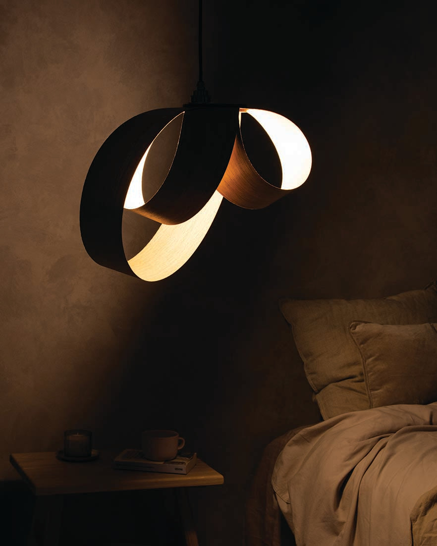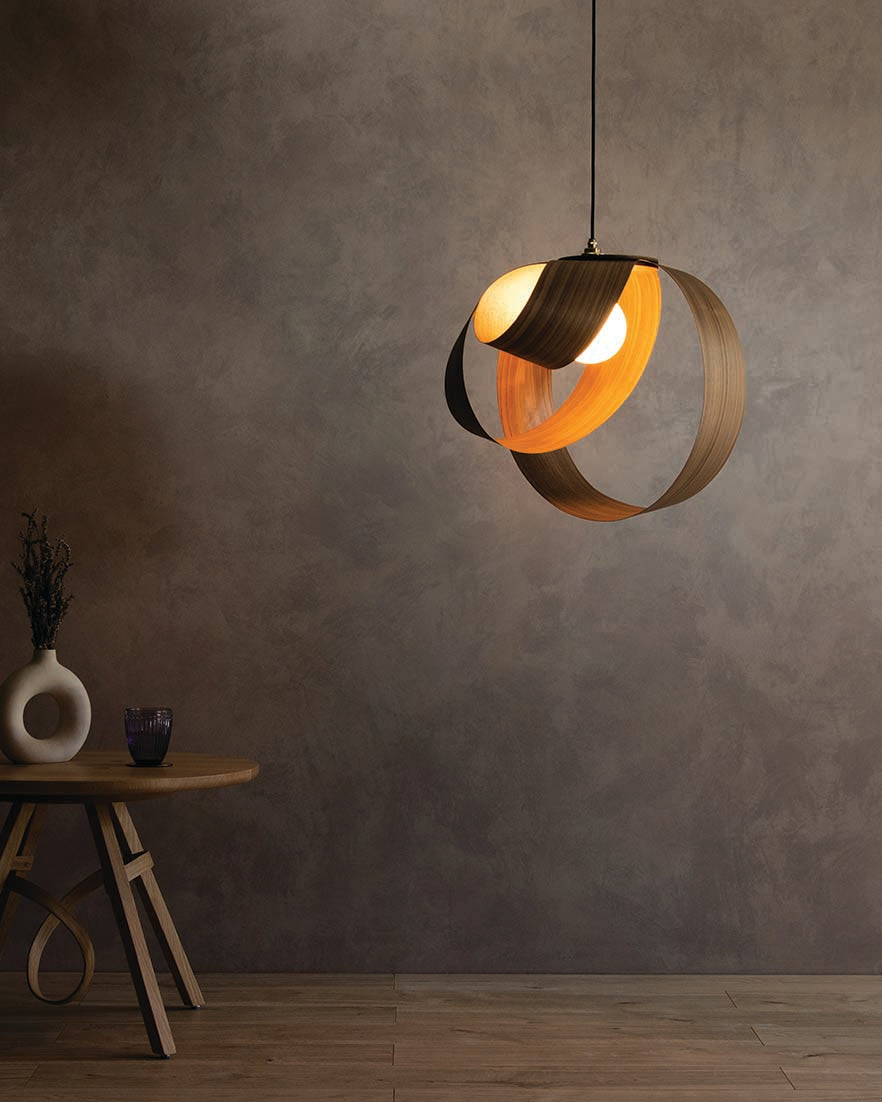 Looping to create eye-catching asymmetry, the Verso Pendant is cleverly crafted from one continuous length of sustainably sourced timber that soars around the warm glow of an exposed bulb to cast a beautiful blend of light and shadow across hallways, living spaces and bedrooms alike. Igniting creativity within your space, the Verso Range looks different from every angle and exhibits its varying form to add playful personality to a wide range of interiors.