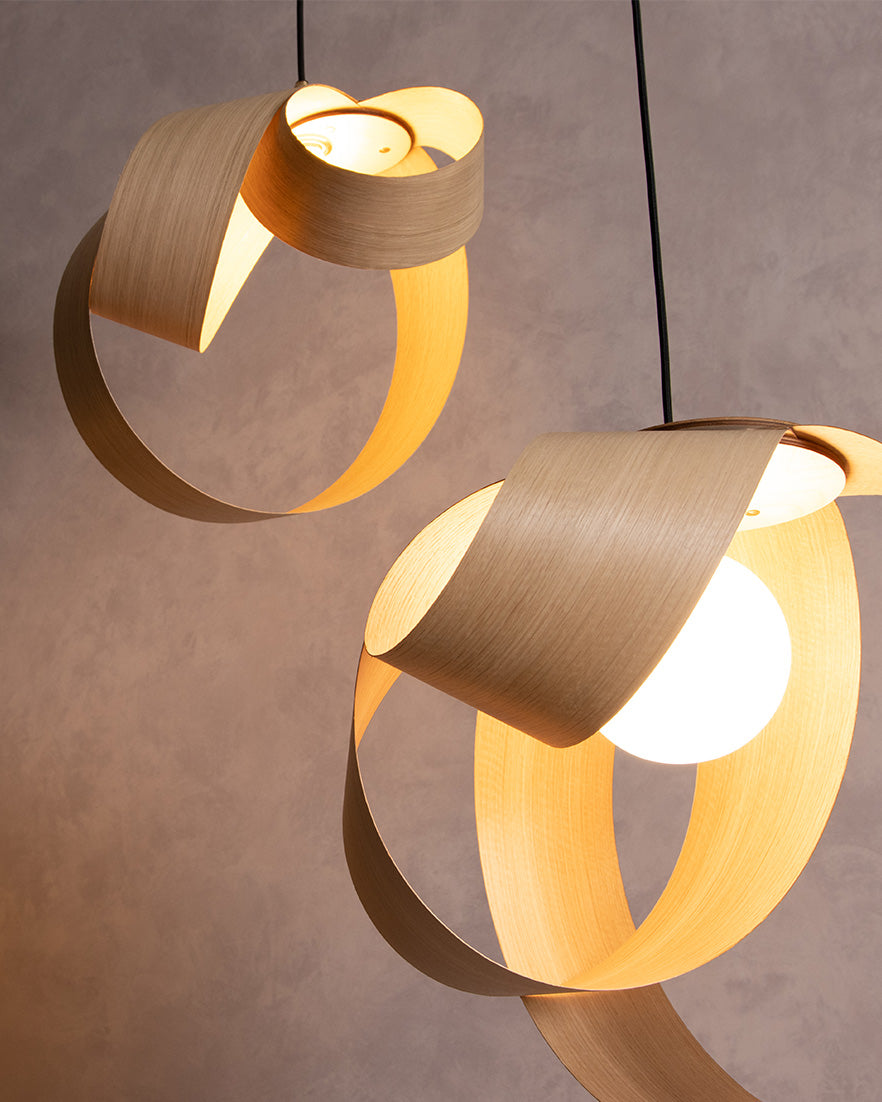 An ornate marriage of balance and light, the Verso Range is an asymmetrical wooden work of art that welcomes a fresh perspective. Forged from the Latin word to ‘spin’, the sculptural Verso Lighting Range calls back to nature and showcases the gravity defying, swooping motion of falling leaves in the wind.