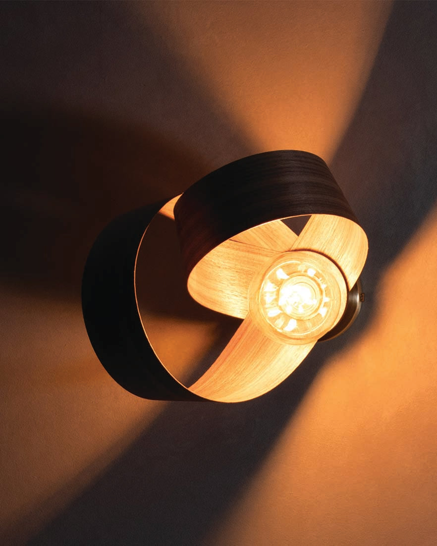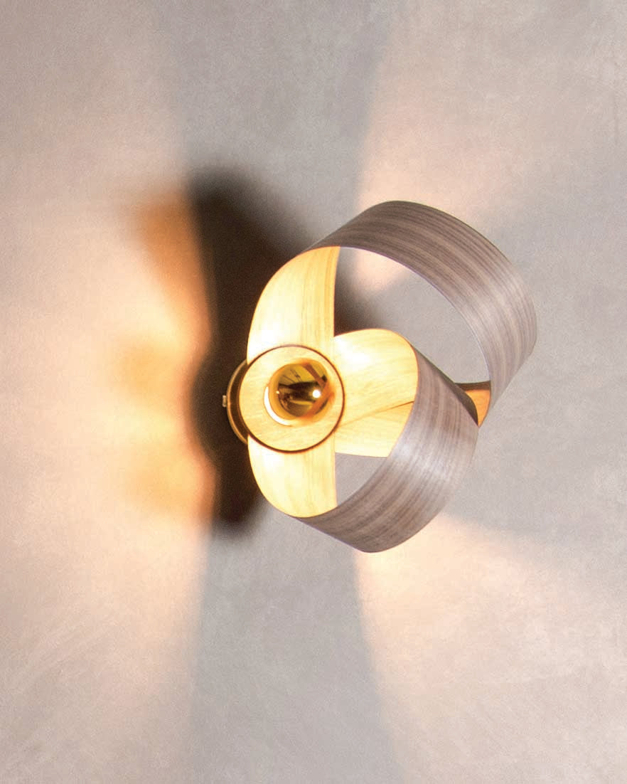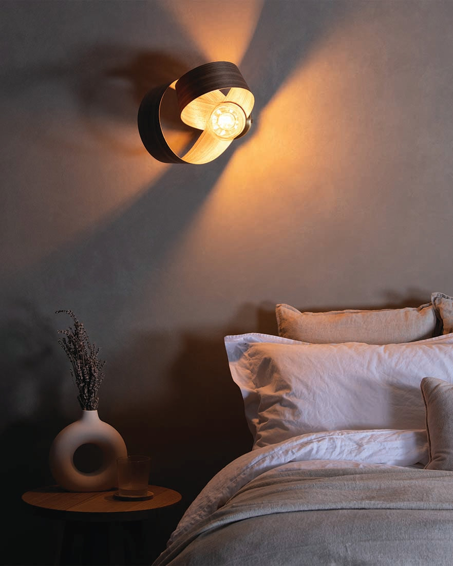Looping to create eye-catching asymmetry, the Verso Wall Light is carefully crafted from one continuous length of sustainably sourced timber that soars around the warm glow of an exposed bulb to cast a beautiful blend of light and shadow. The innovative design can be positioned at different angles to create focused lighting within your space, from cosy reading corners and hardworking hallways to calming bedside spaces, its varying form adds playful personality to a wide range of interiors.