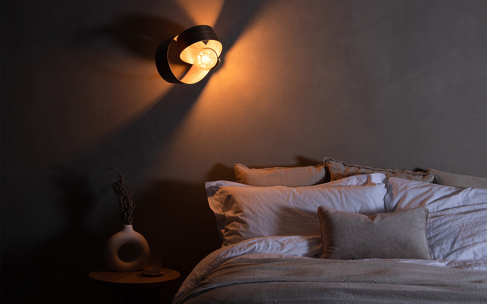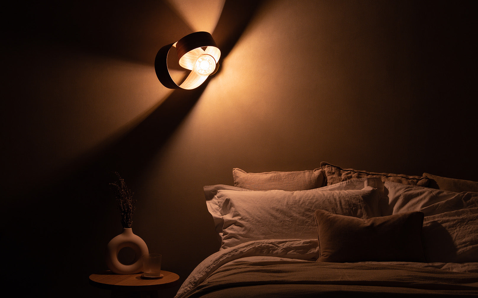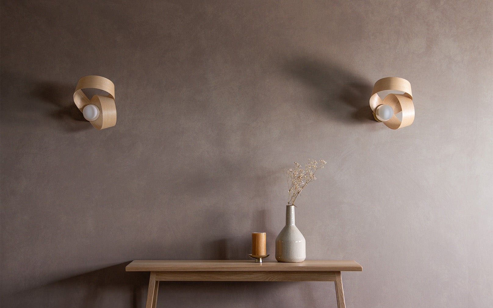 Looping to create eye-catching asymmetry, the Verso Wall Light is carefully crafted from one continuous length of sustainably sourced timber that soars around the warm glow of an exposed bulb to cast a beautiful blend of light and shadow. The innovative design can be positioned at different angles to create focused lighting within your space, from cosy reading corners and hardworking hallways to calming bedside spaces, its varying form adds playful personality to a wide range of interiors.